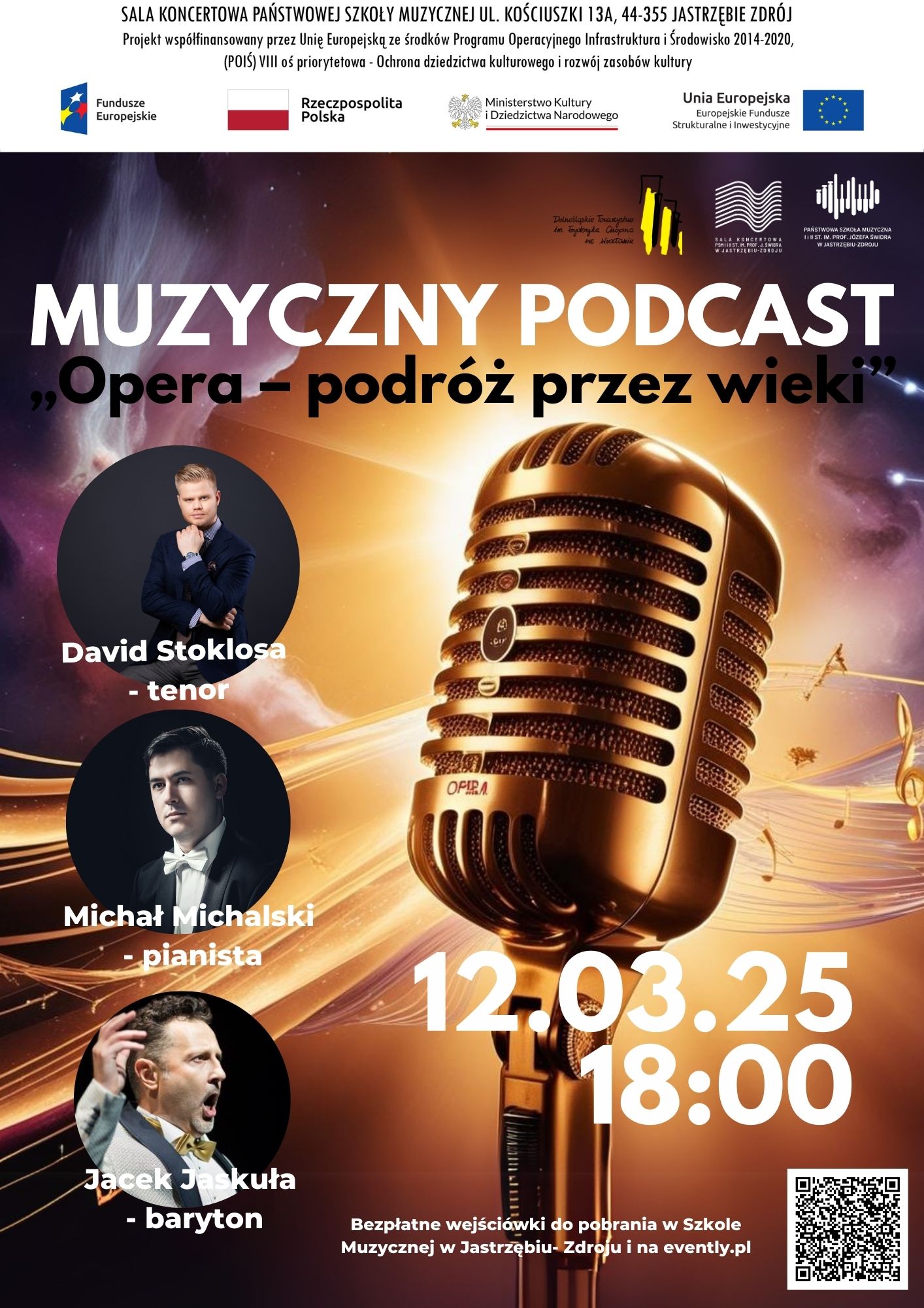 Zapraszamy na Muzyczny Podcast „Opera – podróż przez wieki” , który odbędzie się 12 marca 2025 r. o godzinie 18:00 w Sali koncertowej Szkoły Muzycznej w Jastrzębiu-Zdroju. Bezpłatne wejściówki do pobrania w Szkole Muzycznej w Jastrzębiu-Zdroju i na evently.pl