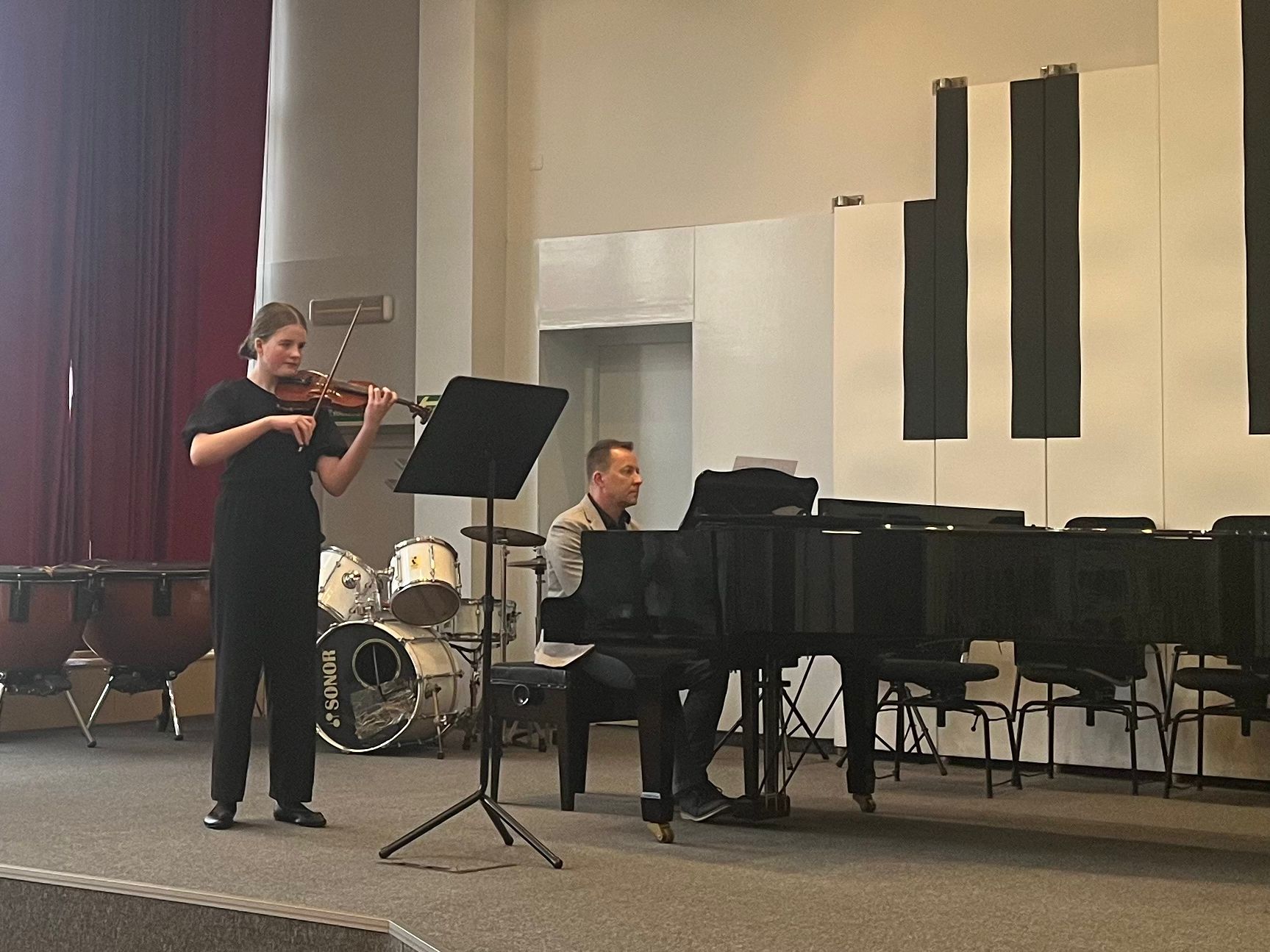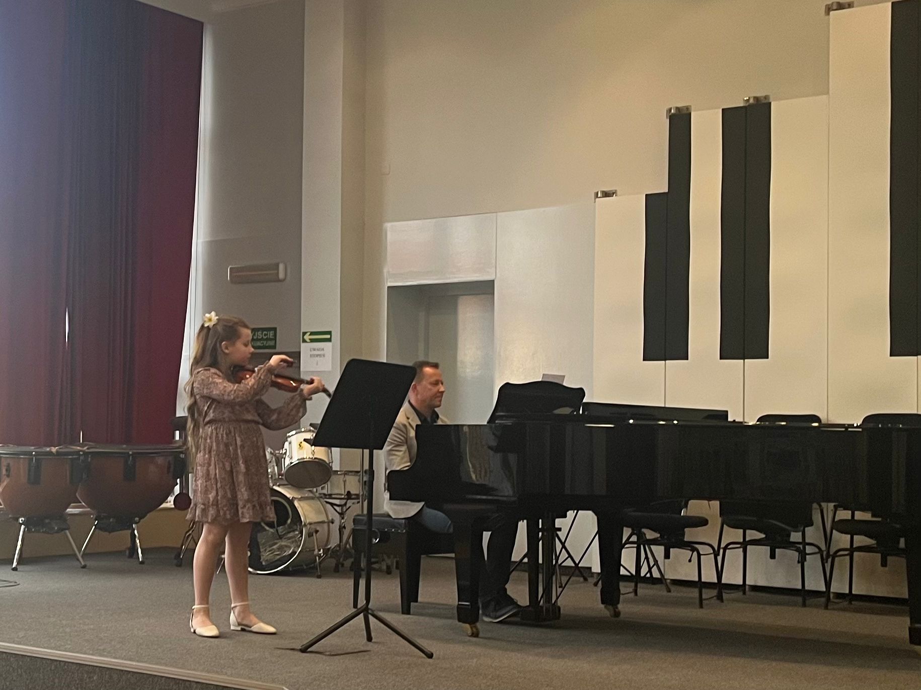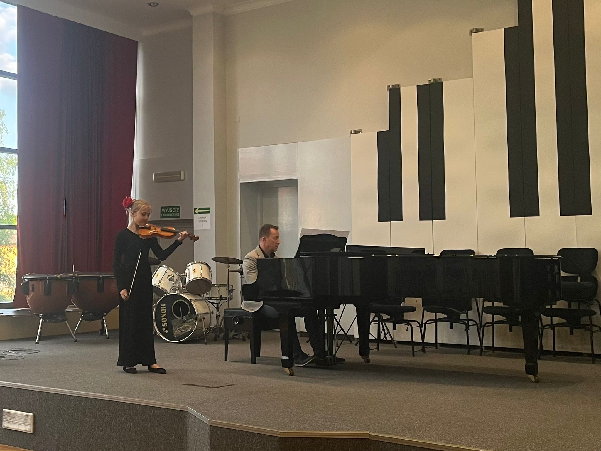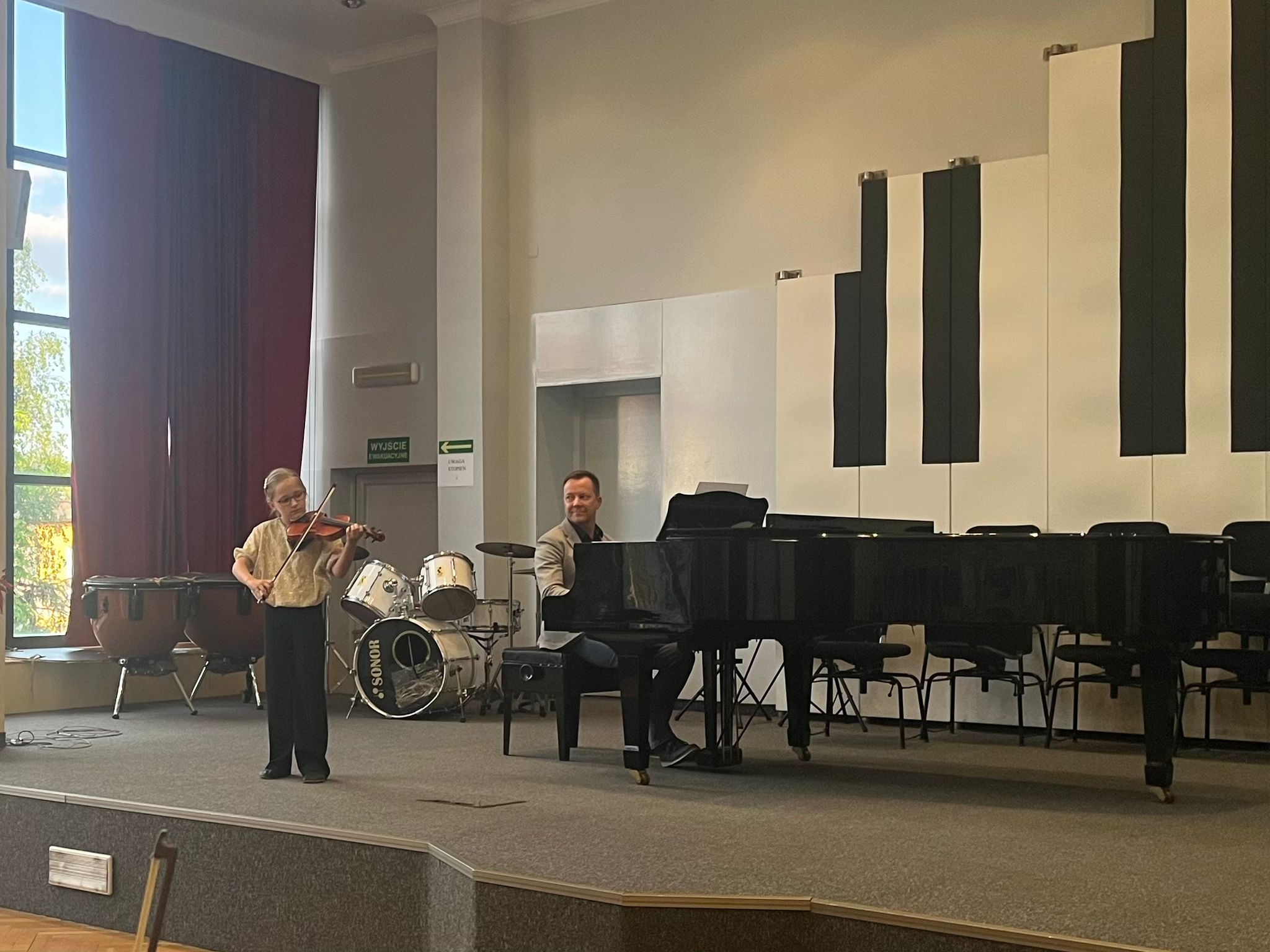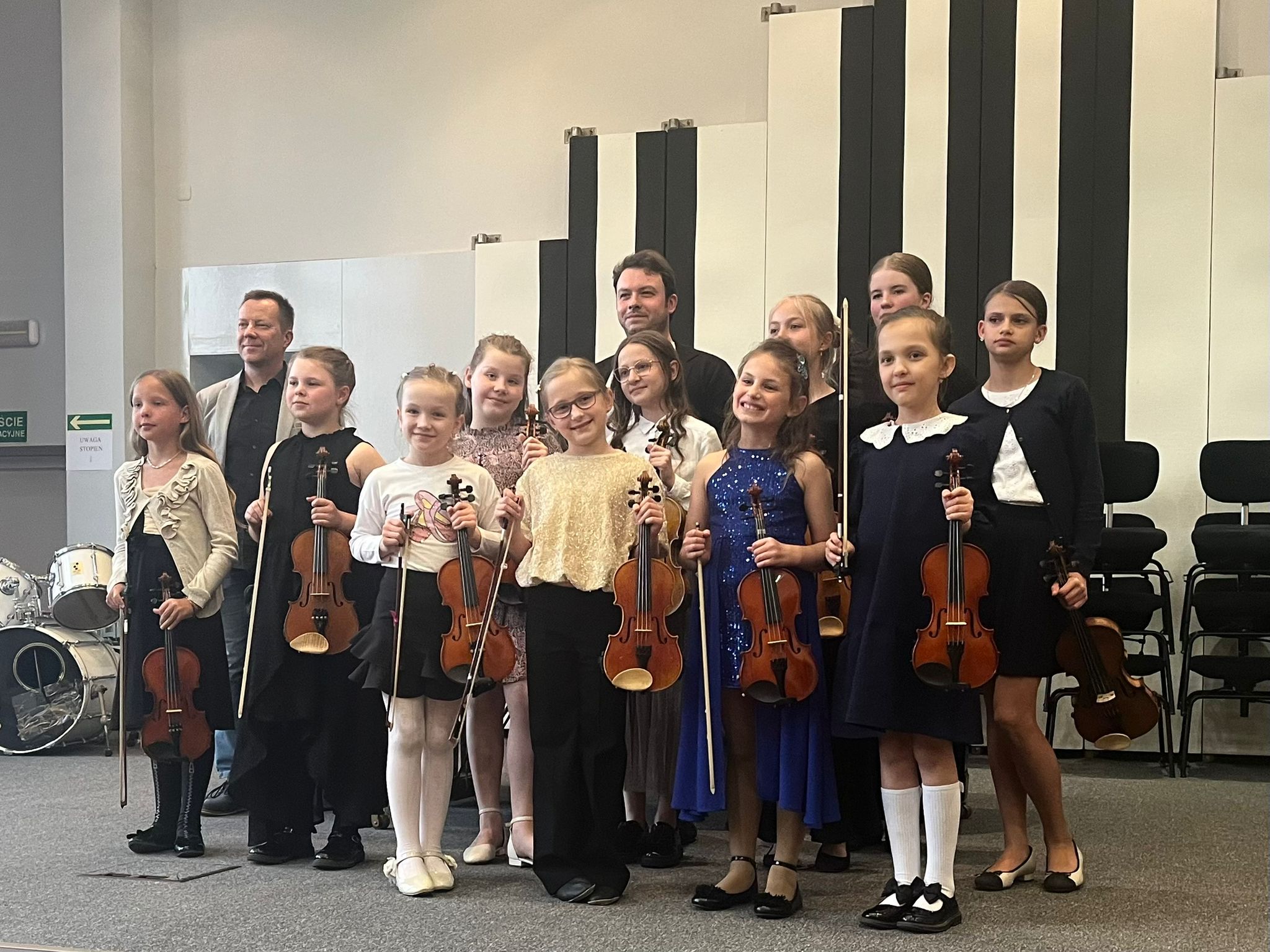 12 maja 2025 r. w auli szkoły odbył się popis klasy skrzypiec Pana Karola Kempnego.