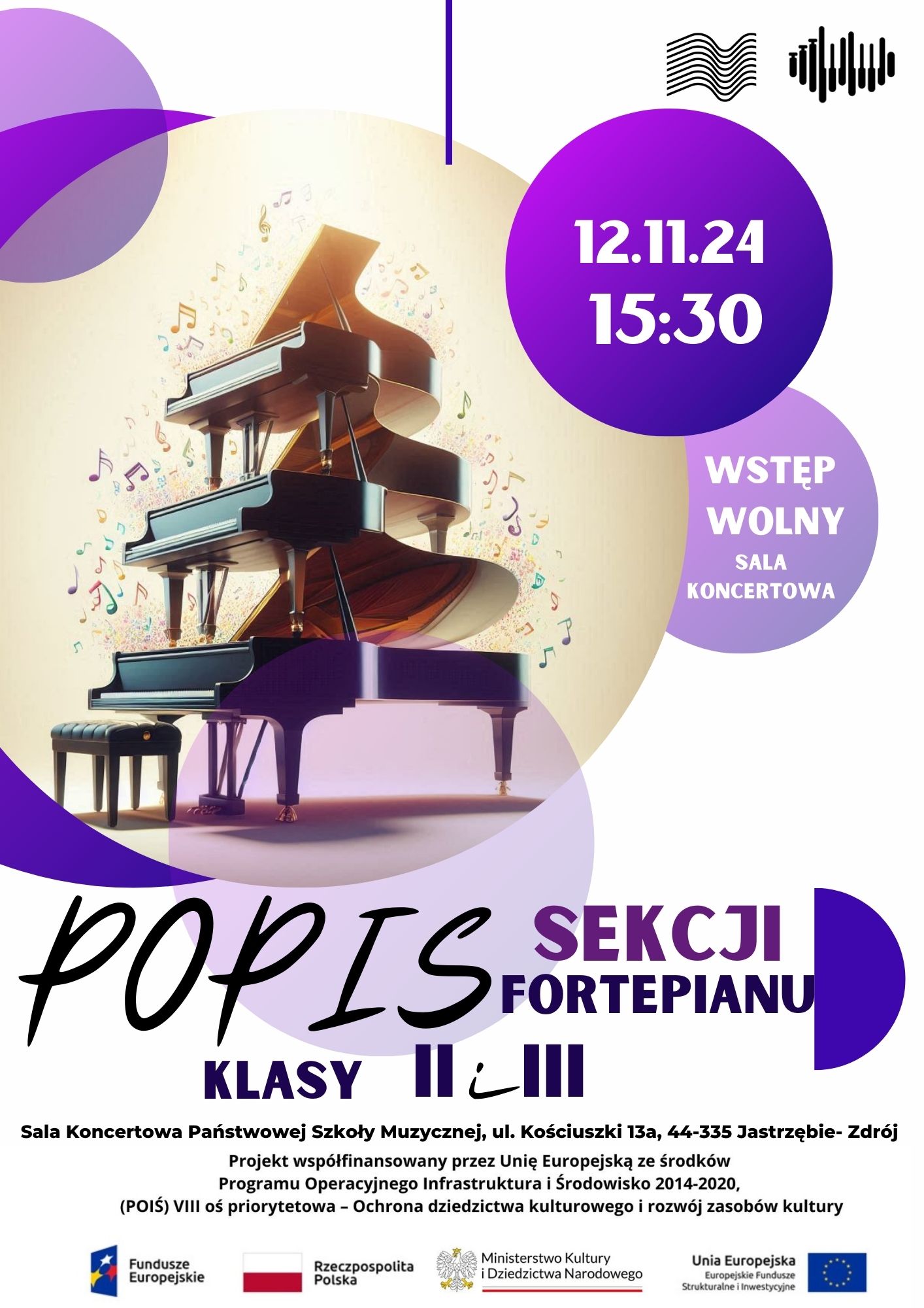 12 listopada 2024 r. w sali koncertowej odbył się popis sekcji fortepianu, podczas którego wystąpili uczniowie klasy II c6 PSM I st.