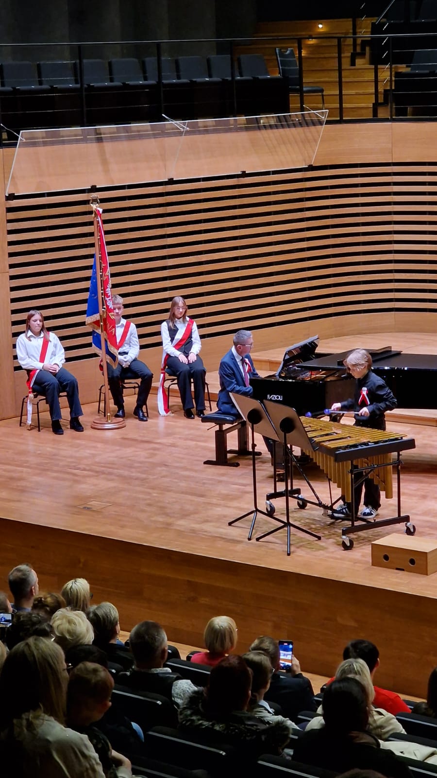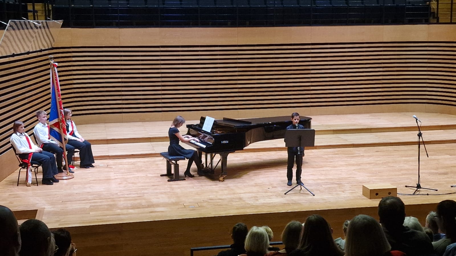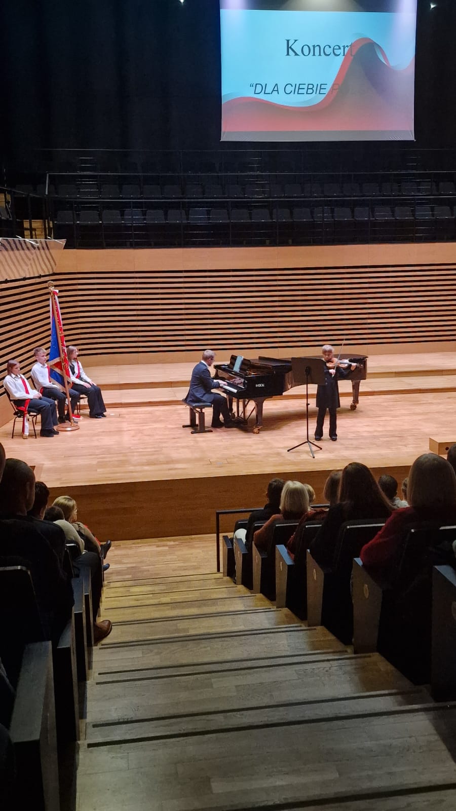 Przy fortepianie wykonawcom towarzyszyli: Pani Edyta Suchanek, Pan Krzysztof Solik i Pan Tomasz Pala.