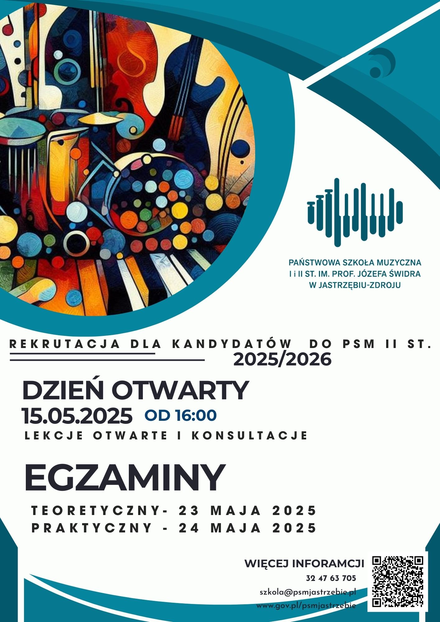 Serdecznie zapraszamy na Dzień Otwarty dla kandydatów do PSM II stopnia. który odbędzie się 15.05.2025 o godz. 16.00.