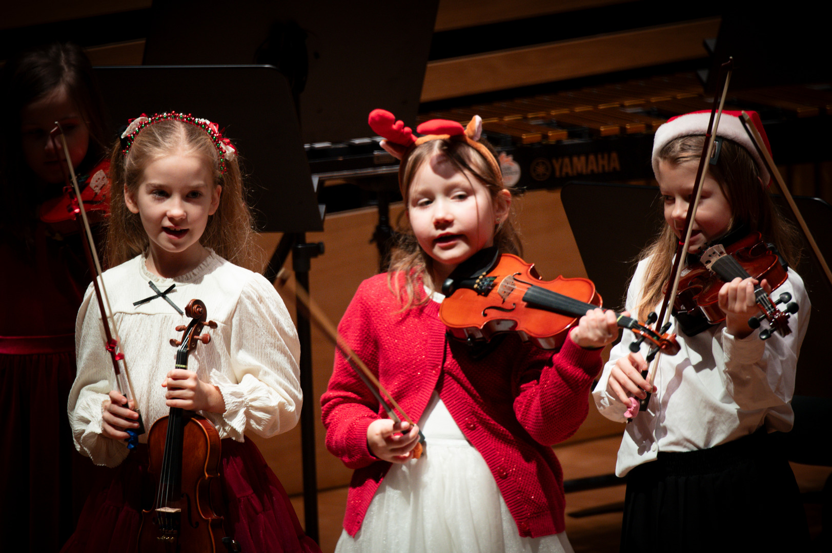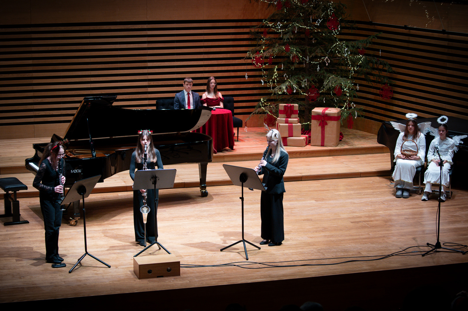 Dzisiejszy drugi świąteczny koncert przyniósł nam tyle ciepła, że trudno było nie uśmiechać się od pierwszych dźwięków. Scena znów wypełniła się muzyką, która płynęła z ogromnym zaangażowaniem i radością — od pierwszych kroków najmłodszych wykonawców po pełne pewności występy starszych uczniów.