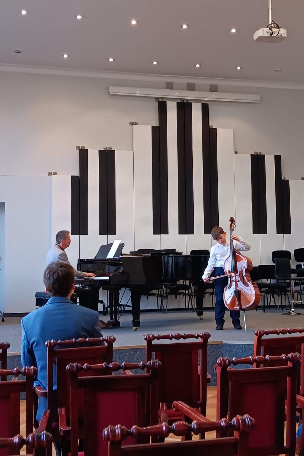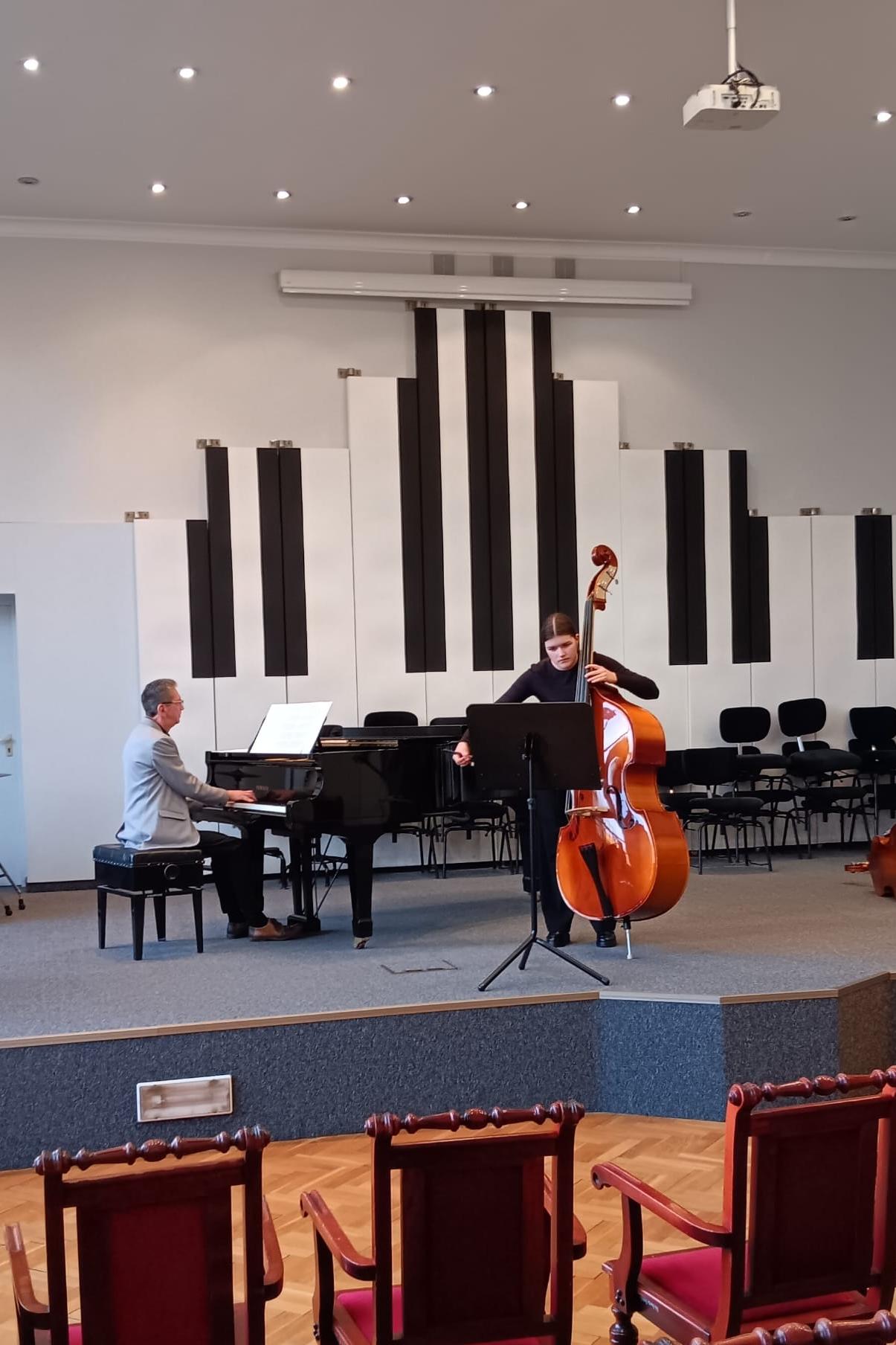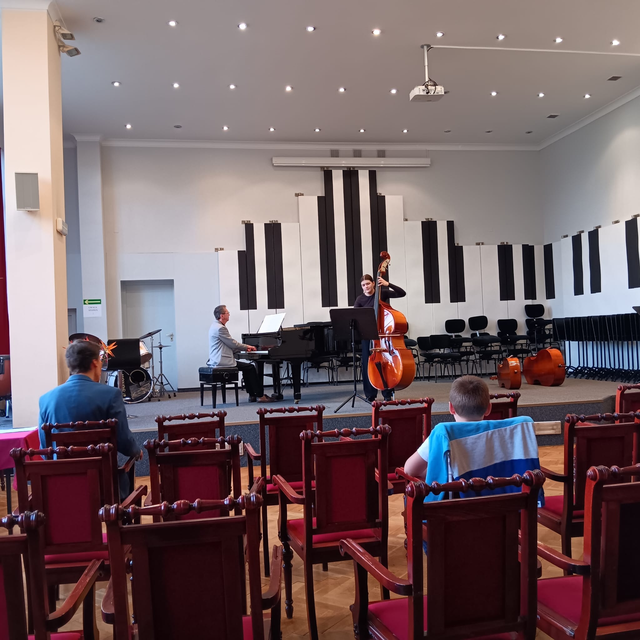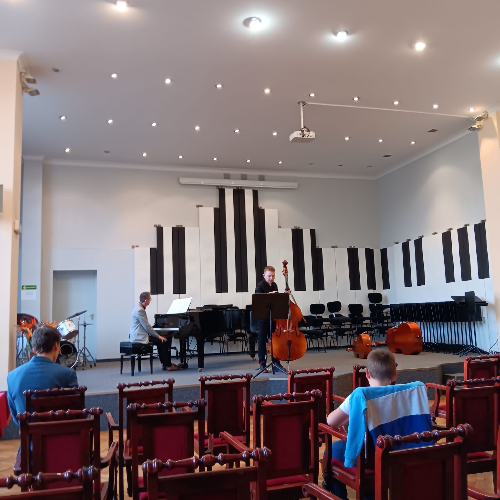 21.05.2025 r. w auli szkoły odbył się popis klasy kontrabasu Pana Piotra Kucharza.