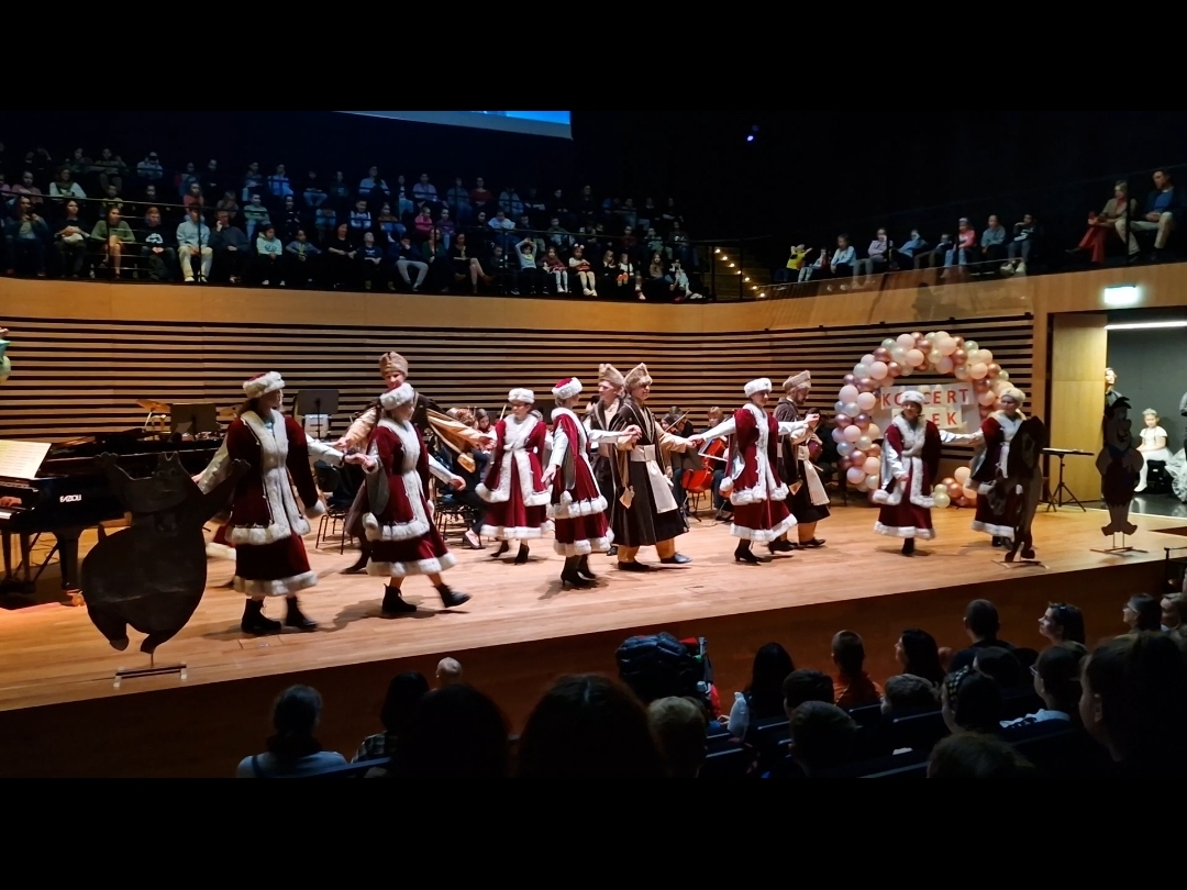 Pokaz nie tylko umiejętności muzycznych, ale i aktorskich uczniów i nauczycieli, którzy również wcielili się w rolę tancerzy i w strojach z epoki zatańczyli na deskach naszej sali.