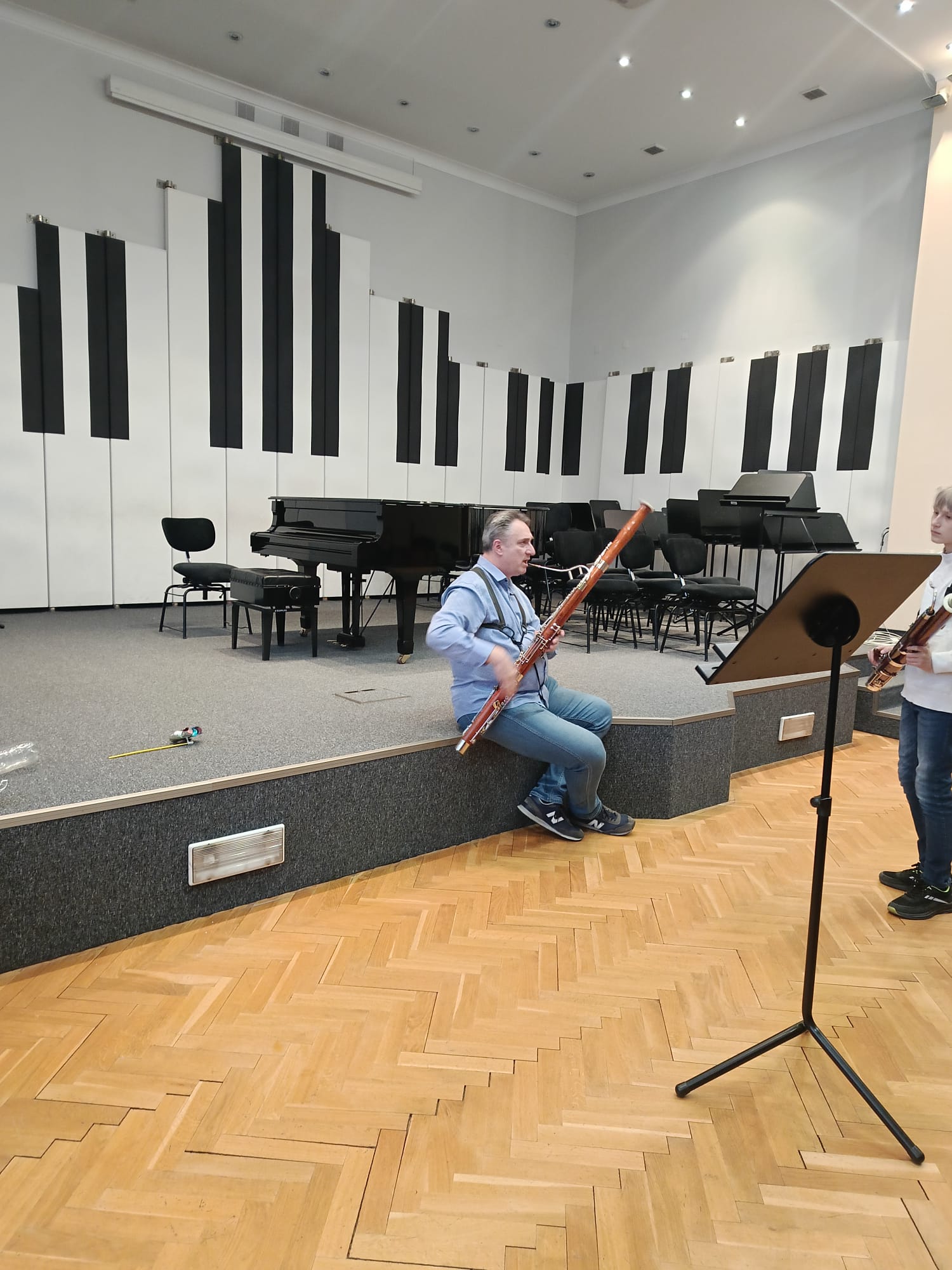24 marca 2025 r. w auli szkoły odbyły się warsztaty fagotowe z dr hab. Krzysztofem Fiedukiewiczem, prof. Akademii Muzycznej w Katowicach, który jest również solistą NOSPR.