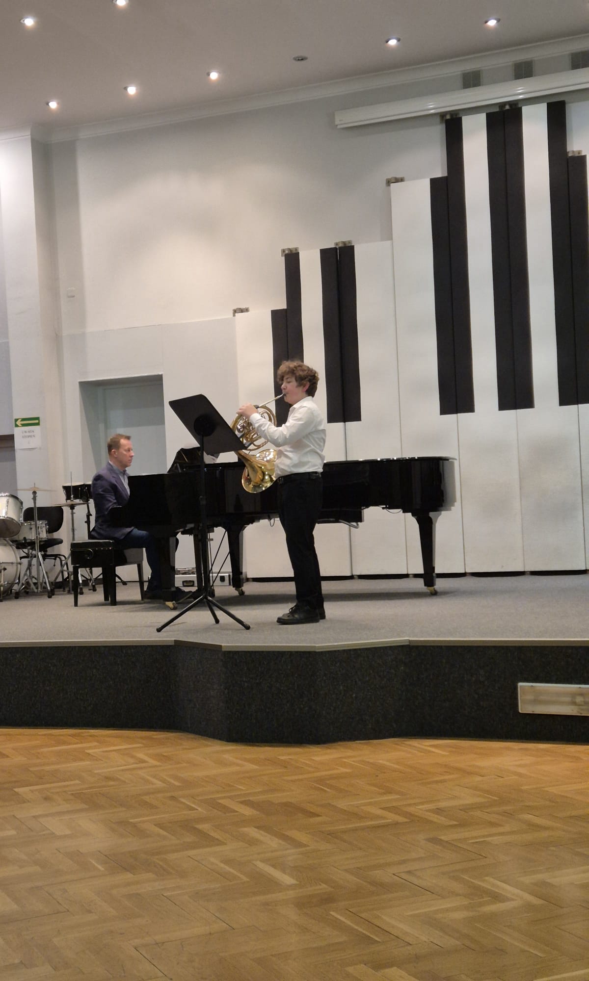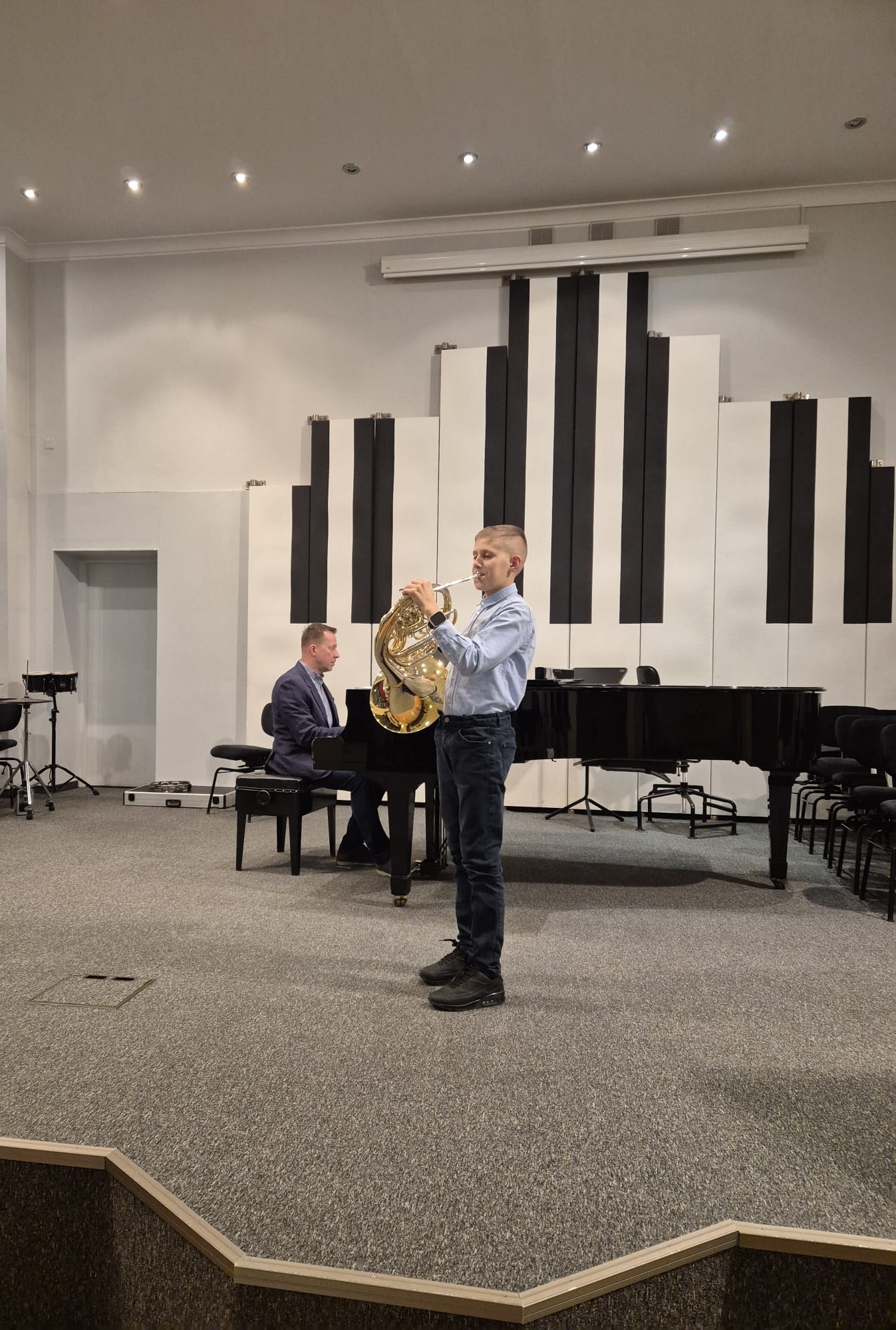 24 listopada 2025 r. w auli szkoły odbył się popis klasy waltorni Pana Tomasza Wójtowicza.