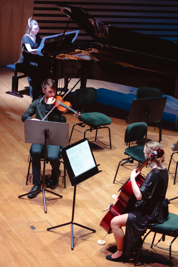 - Trio fortepianowe z klasy Pani Janiny Nabe-Dużej: Maria Brzezińska (fort.), Kinga Szewska (wiolonczela), Błażej Guzdek (skrzypce)