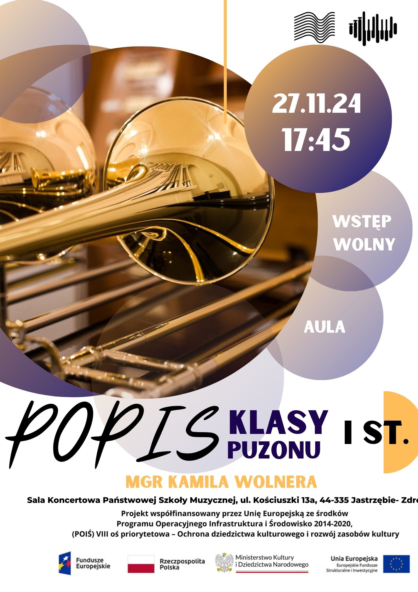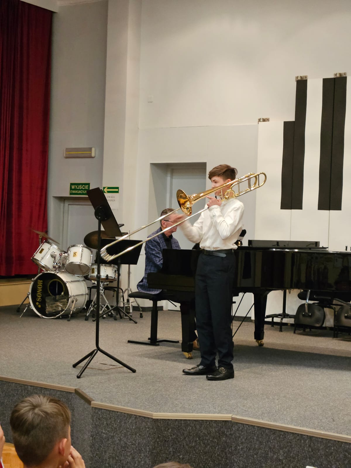 27 listiopada 2024 r w auli odbył się popis klasy puzonu PSM I st. Pana Kamila Wolnera.
