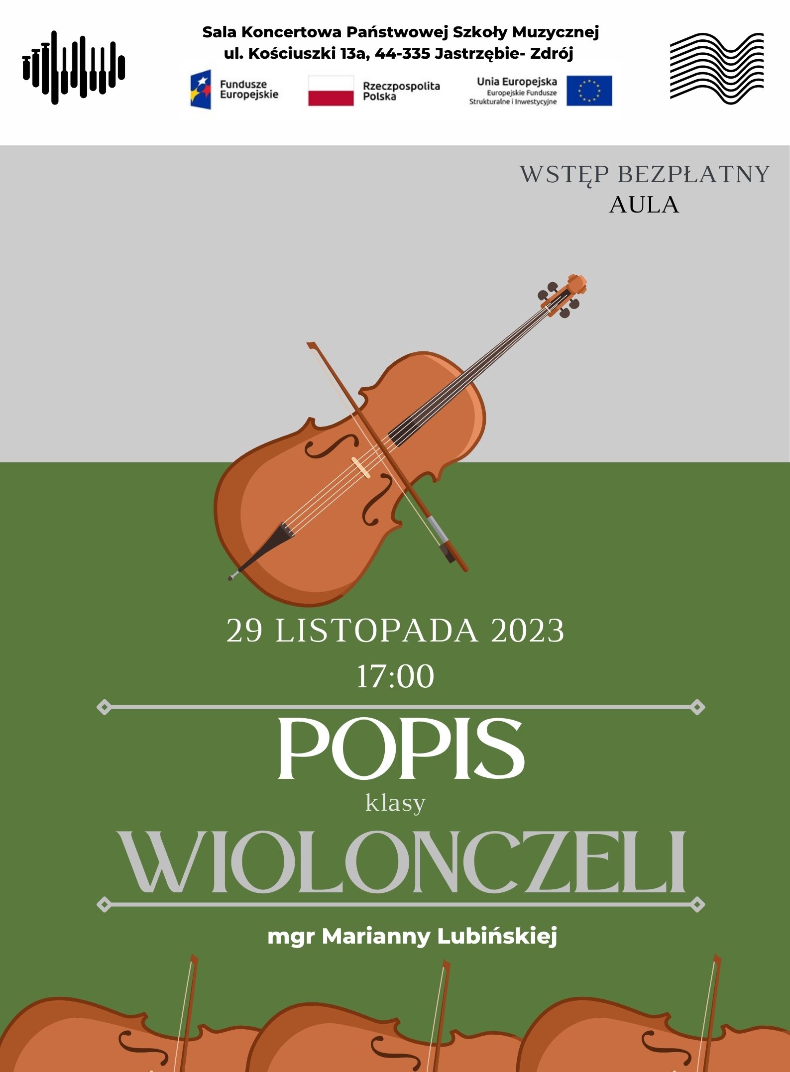 29 listopada 2023 r. w sali kameralnej szkoły odbył się popis klasy wiolonczeli Marianny Lubińskiej.