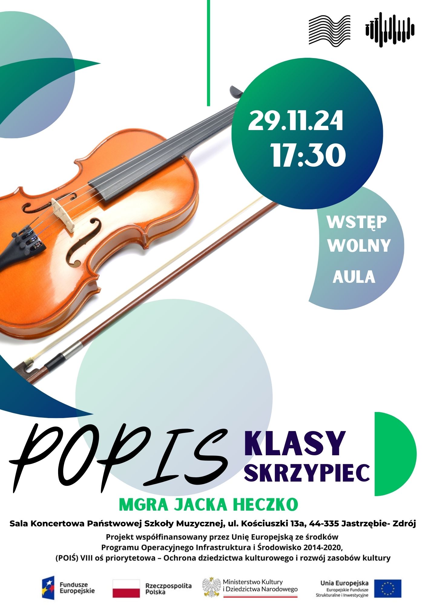29 listopada 2024 r. w auli odbył się popis klasy skrzypiec Pana Jacka Heczko, na którym wystąpił również duet z klasy skrzypiec Pani Alicji Dąbrowskiej, jej uczennica oraz uczennica z klasy wiolonczeli Pani Marianny Lubińskiej.