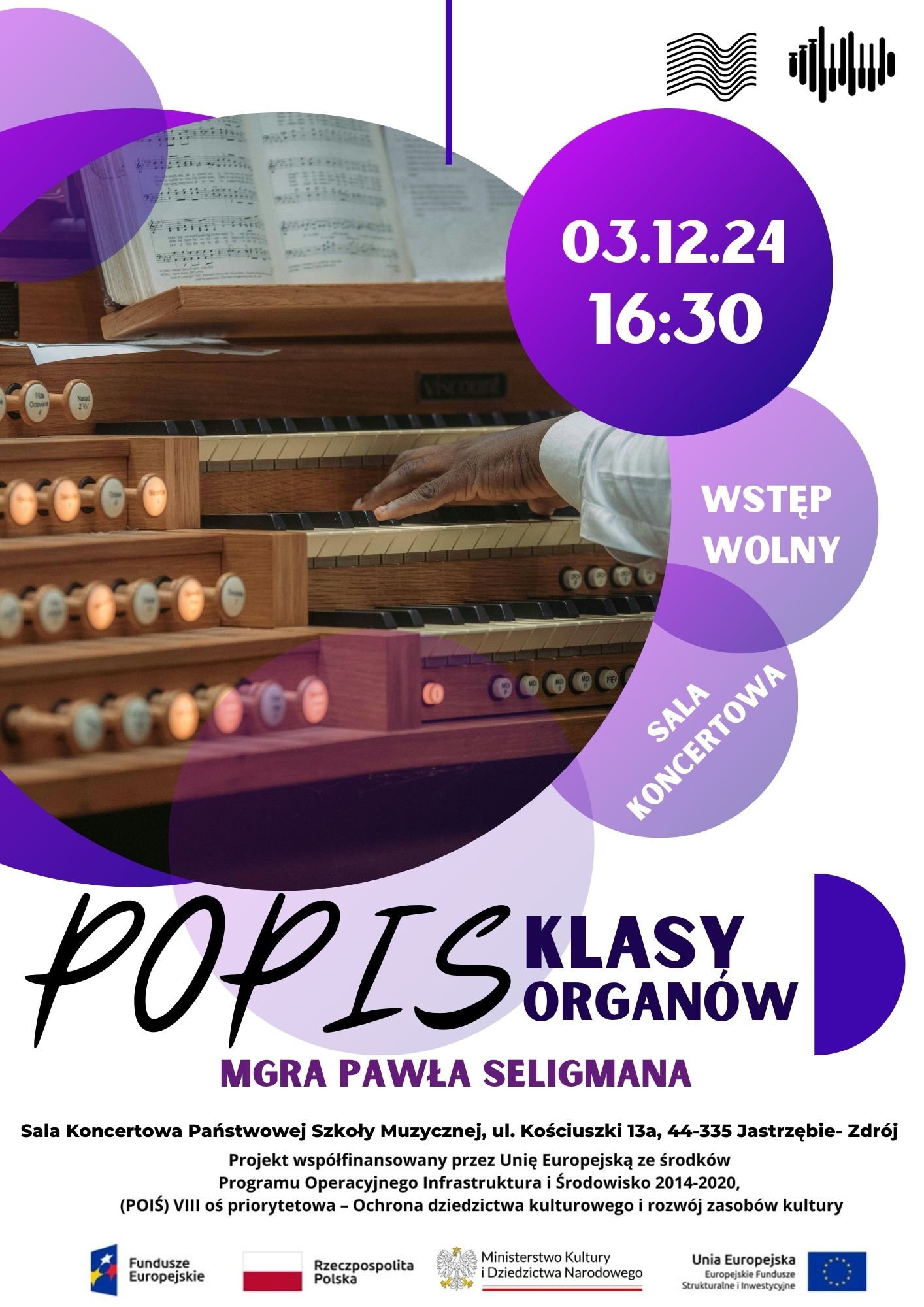 Zapraszamy na Popis klasy organów mgr Pawła Seligmana, który odbędzie się 3 grudnia 2024 r. o godzinie 16:30 w sali koncertowej Szkoły Muzycznej w Jastrzębiu-Zdroju. Wstęp wolny.