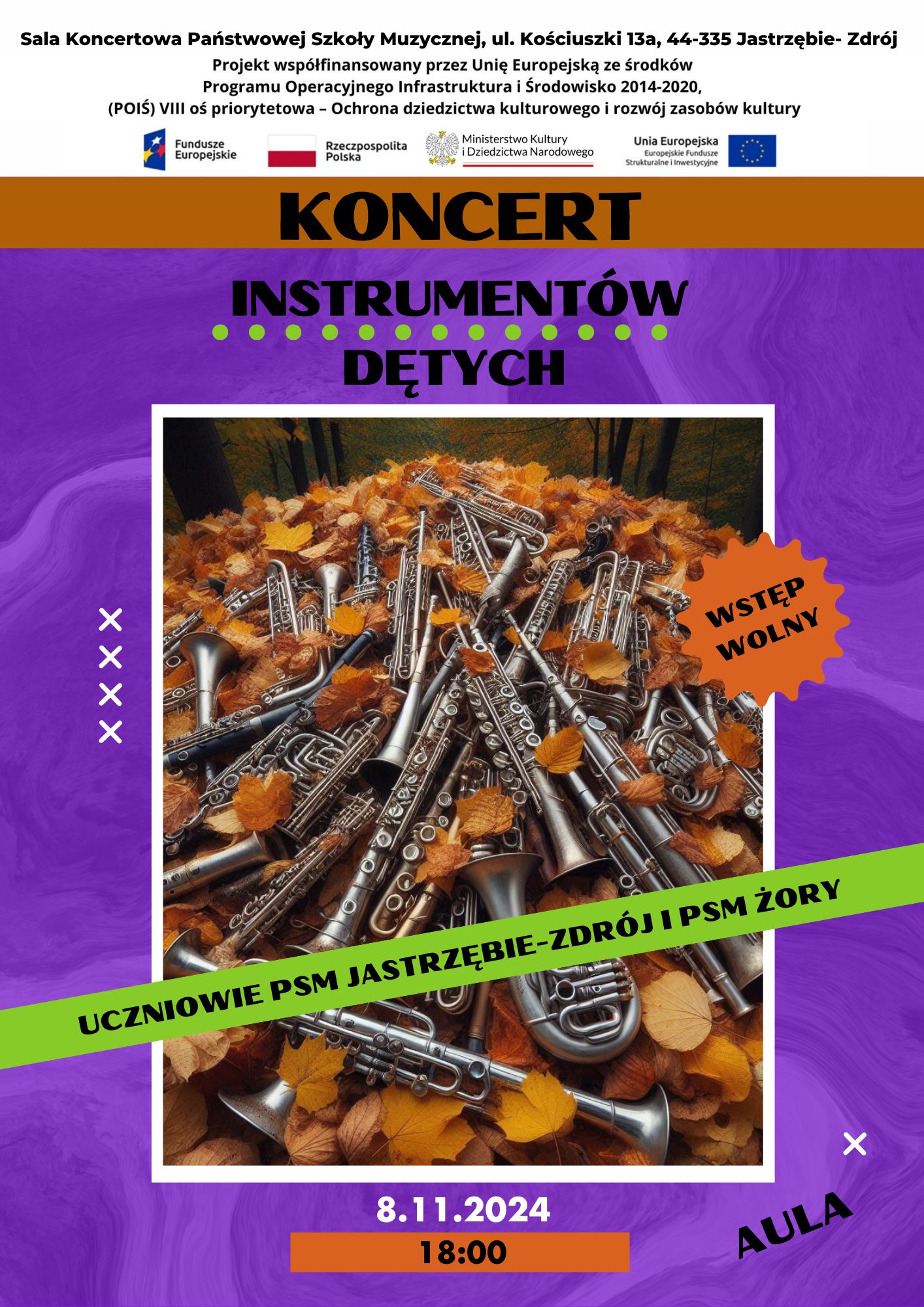 Uczniowie PSM Jastrzębie-Zdrój i PSM Żory zapraszają na Koncert instrumentów dętych, który odbędzie się 8 listopada 2024 r. o godzinie 18:00 w Auli Szkoły Muzycznej w Jastrzębiu-Zdroju. Wstęp wolny.