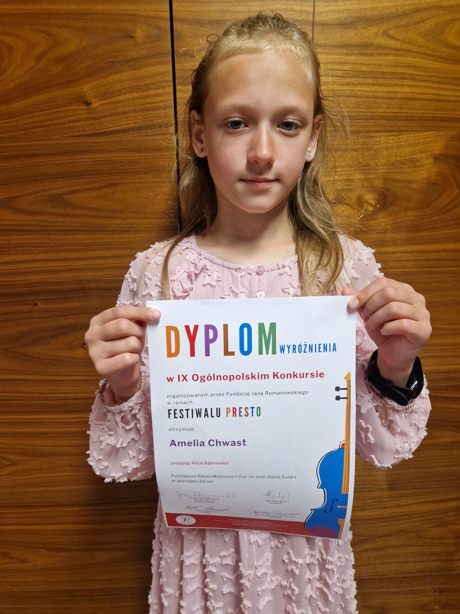 Amelka jest uczennicą klasy skrzypiec Pani Alicji Dąbrowskiej