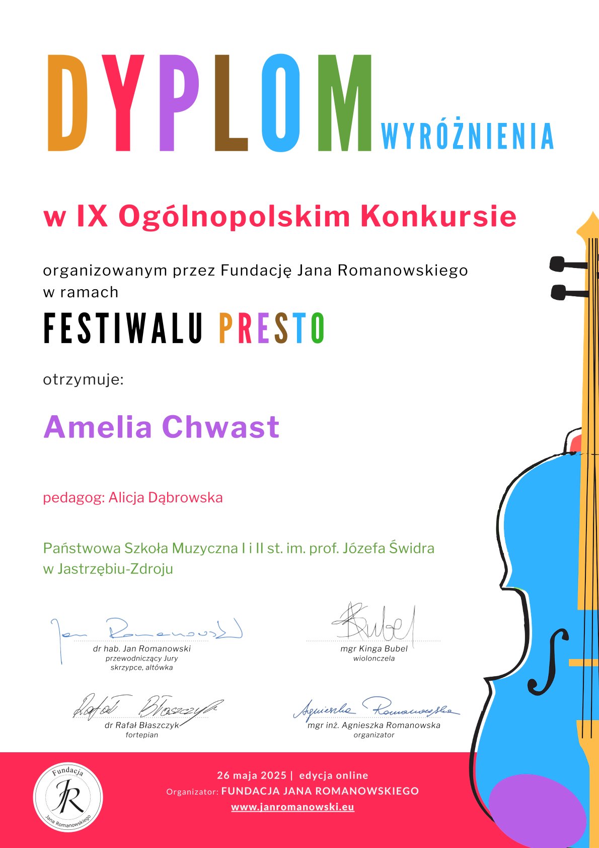- WYRÓŻNIENIE - IX Ogólnopolski Konkurs w ramach FESTIWALU PRESTO, 26.05.2025 r. – edycja online