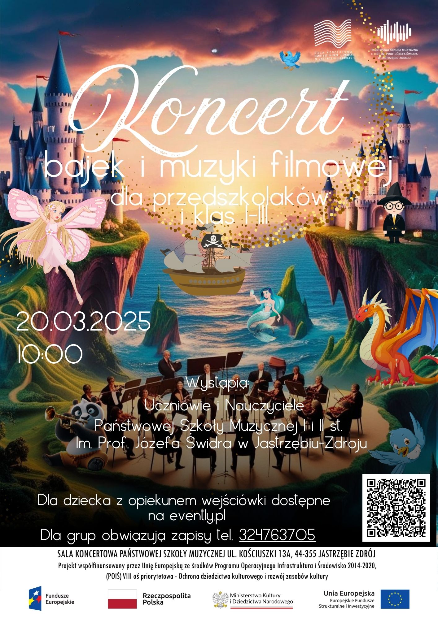 20.03.2025 Koncert bajek i muzyki filmowej dla przedszkolaków i klas I-III; godz. 10:00