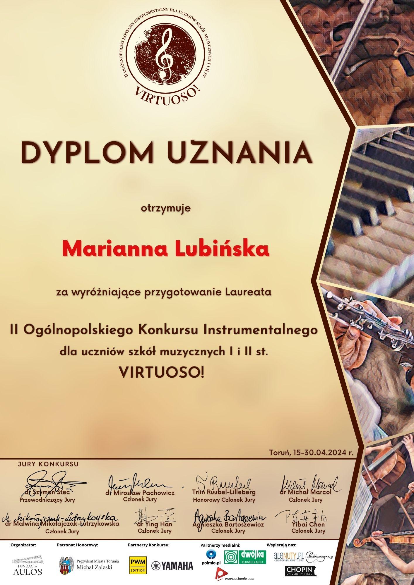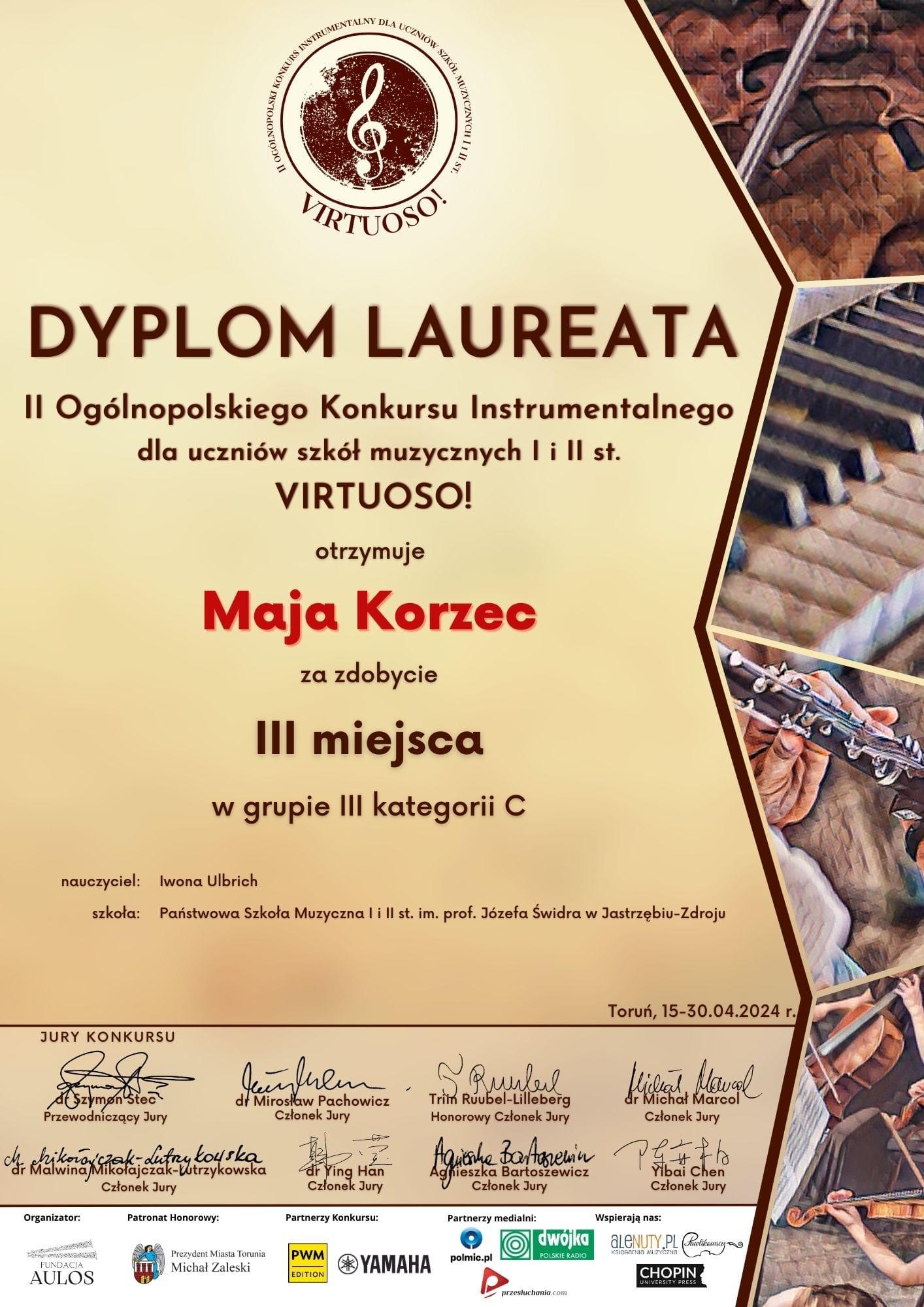 Laura Passon, Maja Korzec, Leon Zmorzyński i Martyna Olszewska wśród Laureatów ogólnopolskiego konkursu instrumentalnego "Virtuoso"