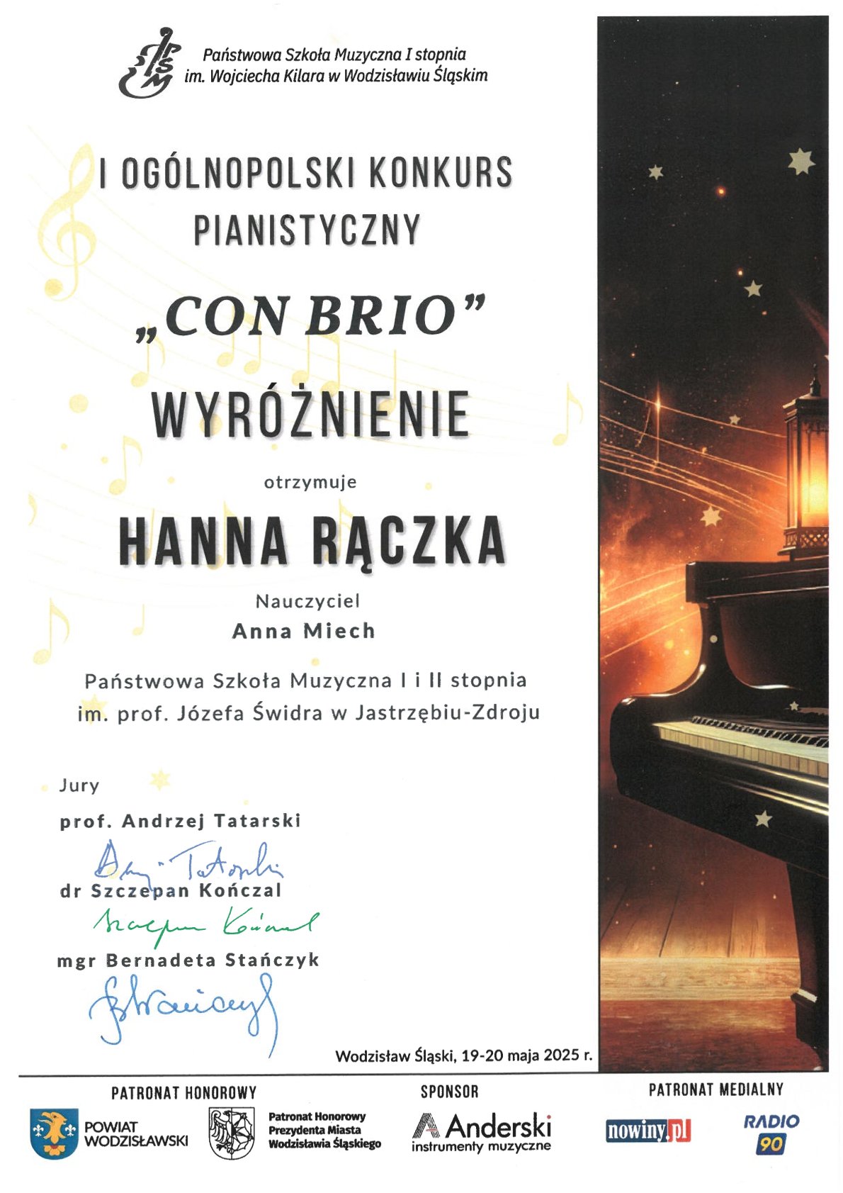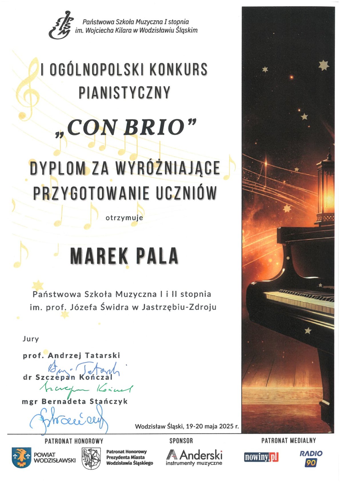 Konkurs odbył się w dniach 19-20.05.2025 r. w Państwowej Szkole Muzycznej I stopnia im. Wojciecha Kilara w Wodzisławiu Śląskim.