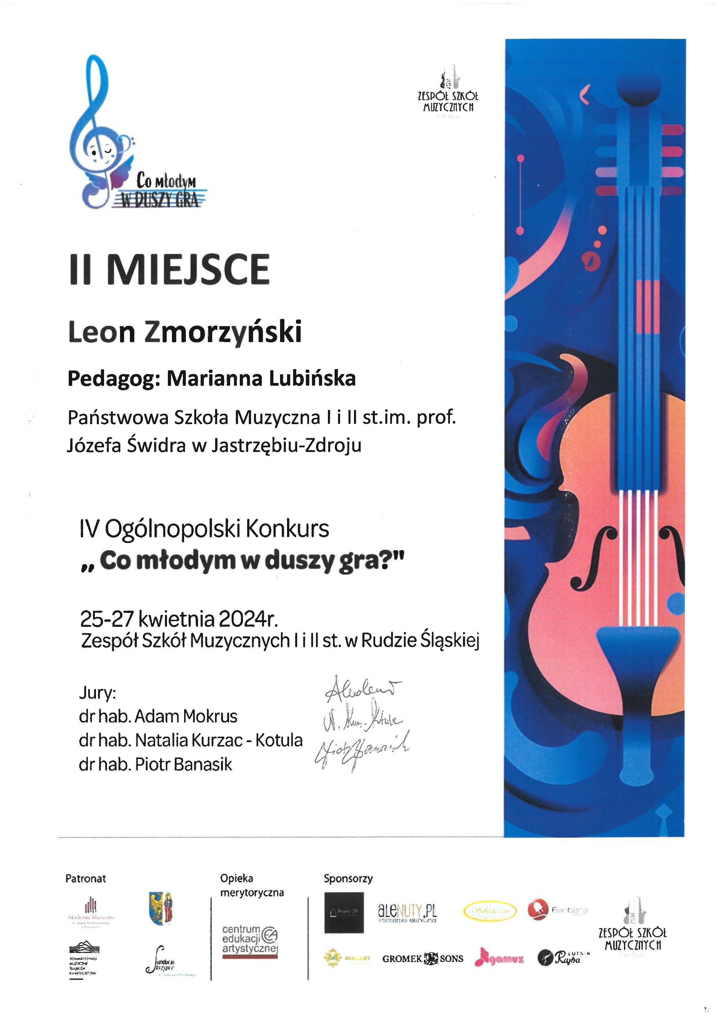 - II MIEJSCE - IV Ogólnopolski Konkurs „Co młodym w duszy gra?”, Ruda Śląska, 25-27.04.2024r.