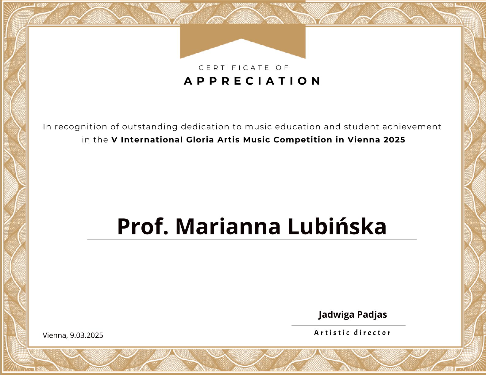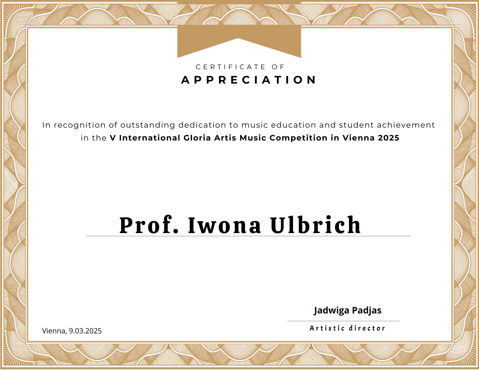 Z radością informujemy, że dnia 9 marca 2025 r. w V Międzynarodowym Konkursie GLORIA ARTIS w Wiedniu pięcioro uczniów naszej szkoły zostało laureatami!