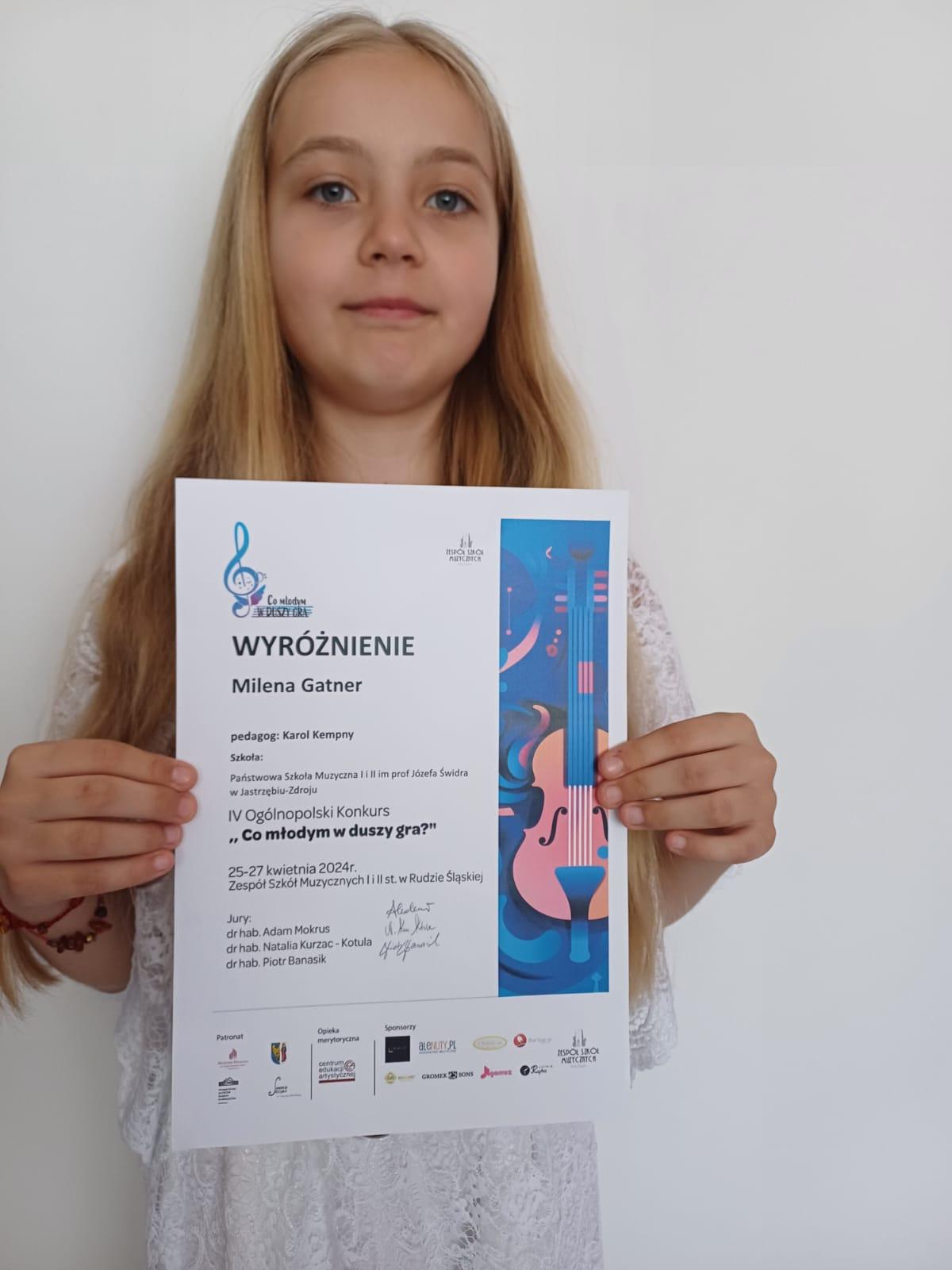 Milenka jest uczennicą klasy skrzypiec Pana Karola Kempnego.