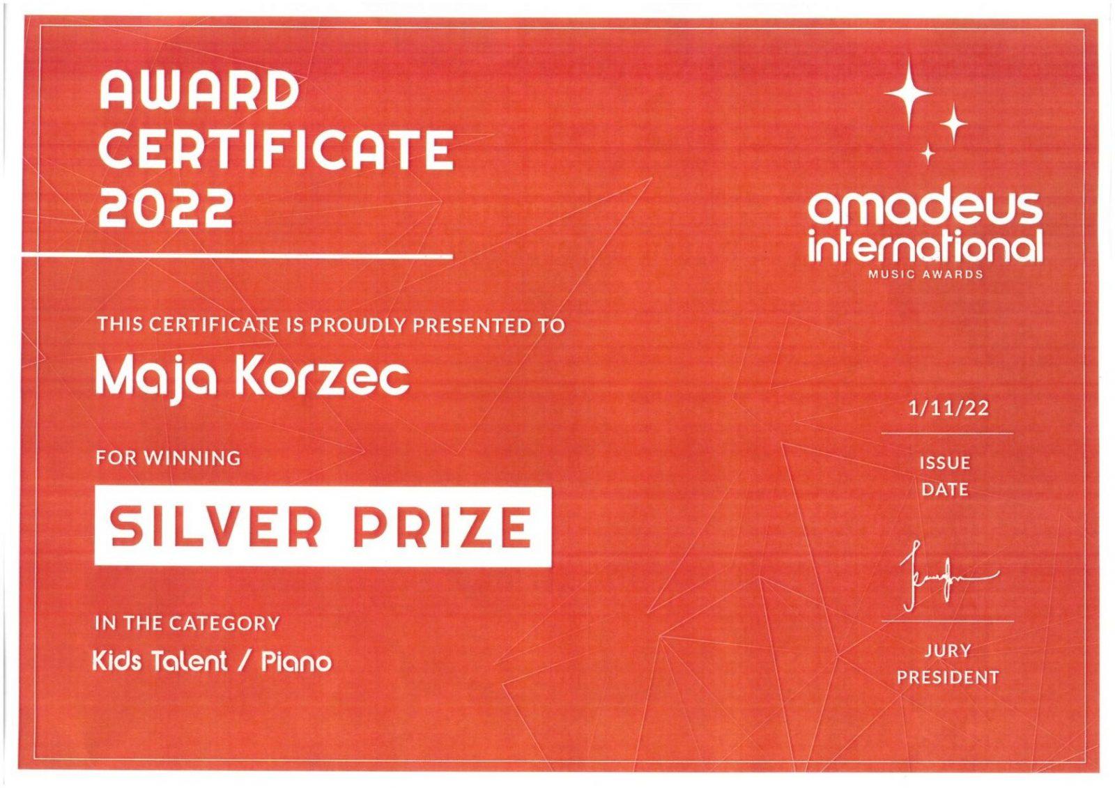 - Międzynarodowy Konkurs Amadeus International Music Awards (Austria), 01.11.2022 r. edycja online