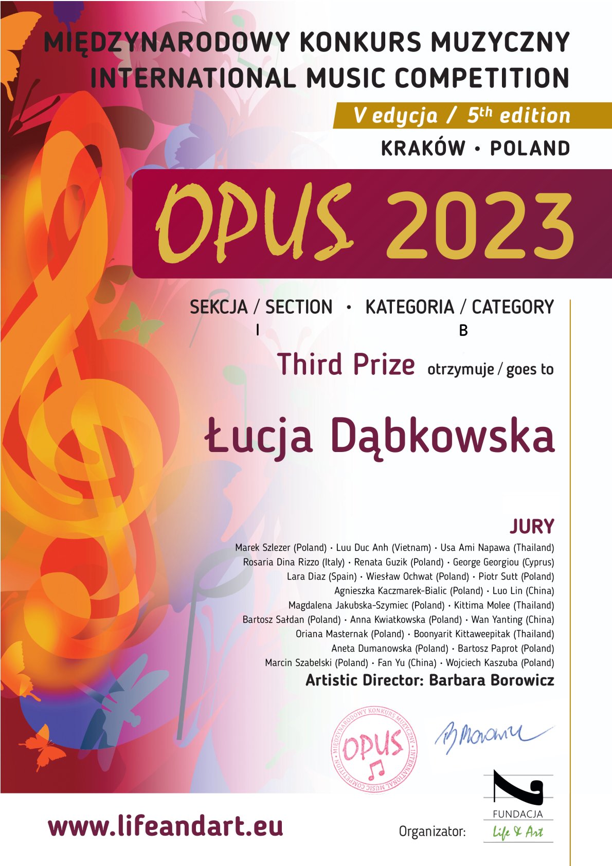 Międzynarodowy Konkurs Muzyczny „OPUS 2023”, V edycja, Kraków, 8.05.2023 r. – edycja online