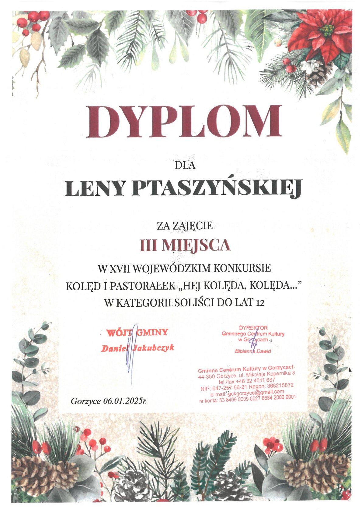 XV Powiatowy Konkurs Polskich Kolęd i Pastorałek, Wodzisław Śląski, 30,01,2025 r.