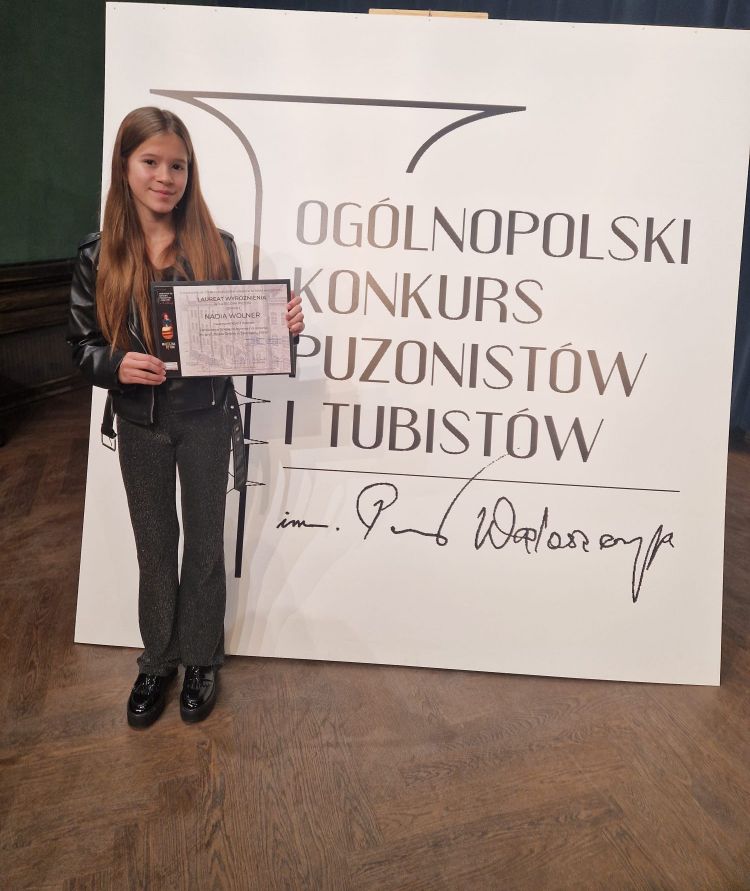 - LAUREAT WYRÓŻNIENIA – NADIA WOLNER z klasy puzonu mgra Kamila Wolnera – kategoria puzon, grupa I