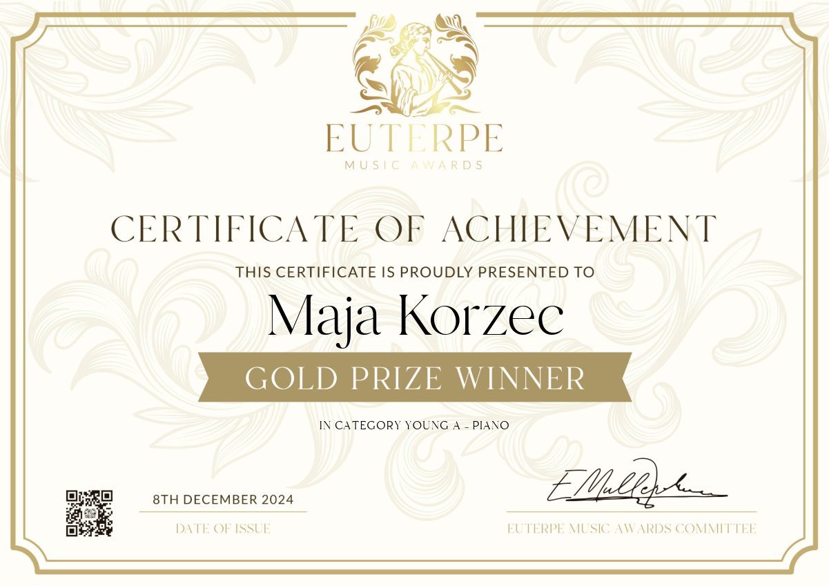 - ZŁOTY MEDAL – MAJA KORZEC z klasy fortepianu mgr Iwony Ulbrich