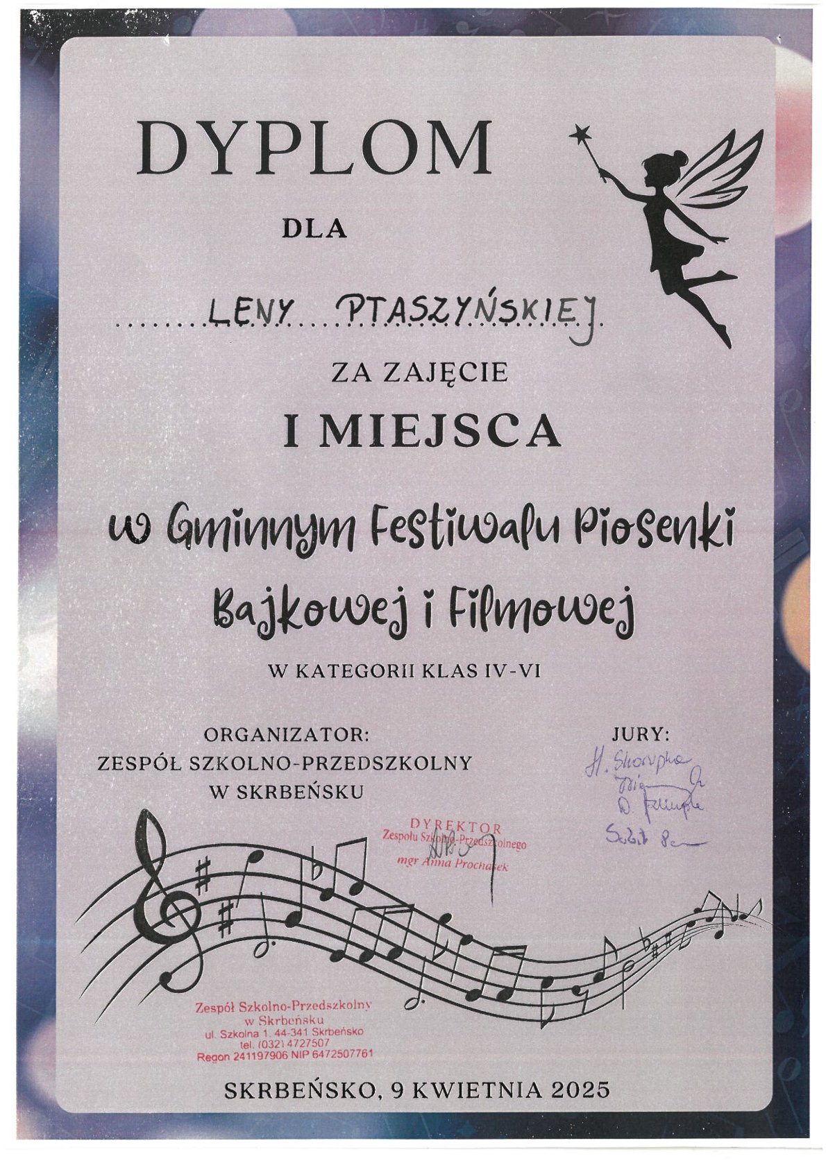 - Gminny Festiwal Piosenki Bajkowej i Filmowej, Skrbeńsko, 9.04.2025 r.