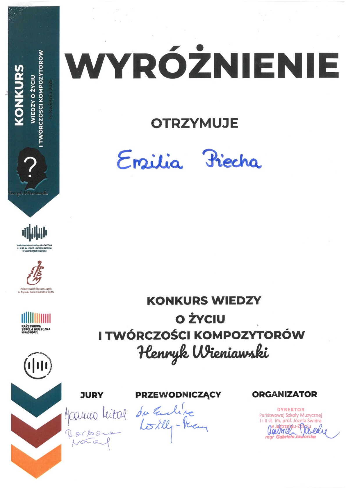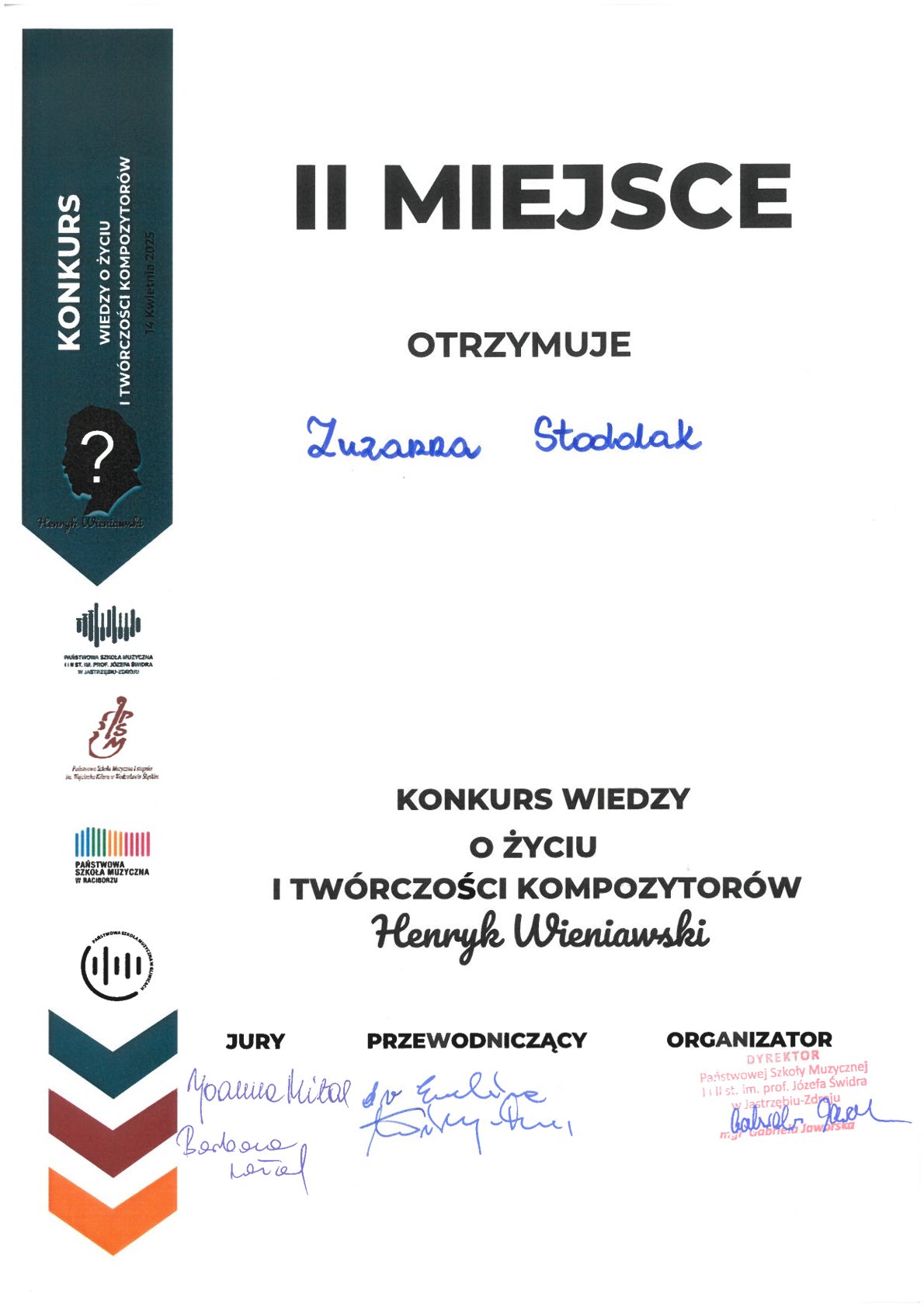 - Konkurs Wiedzy o Życiu i Twórczości Kompozytorów Henryk Wieniawski, Wodzisław Śląski, 14.04.2025 r.