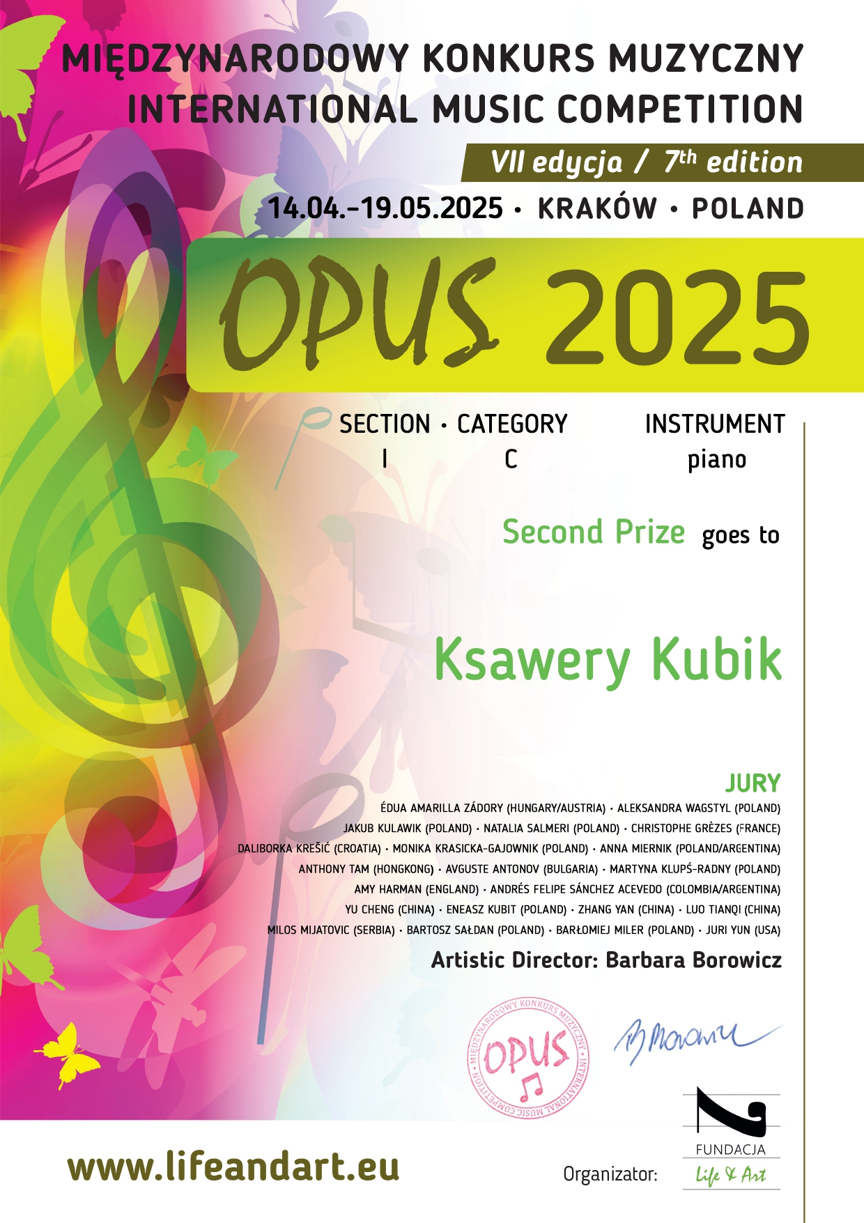 - Międzynarodowy Konkurs Muzyczny OPUS 2025, Kraków, 14.04 – 19.05.2025 r. – VII edycja online