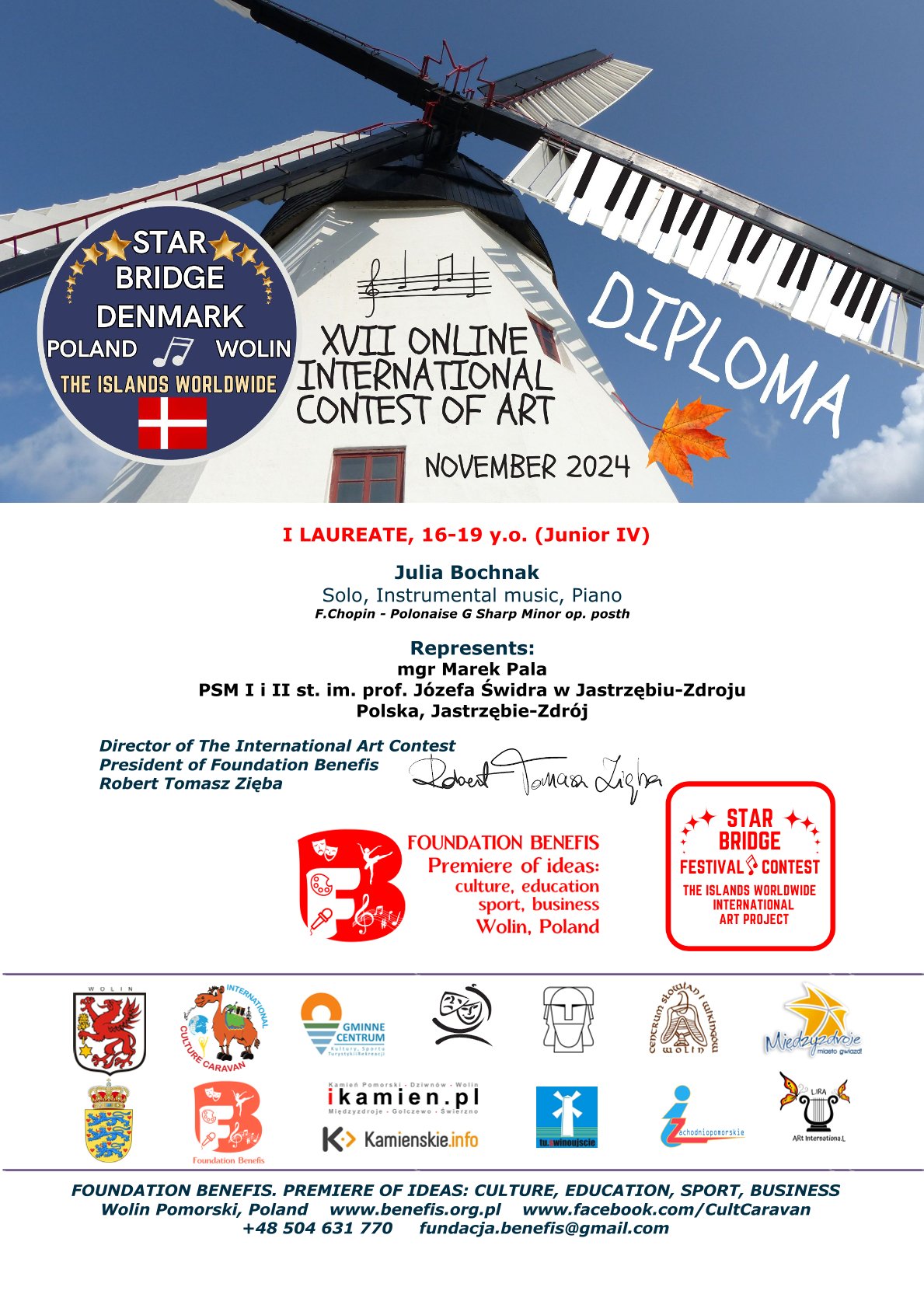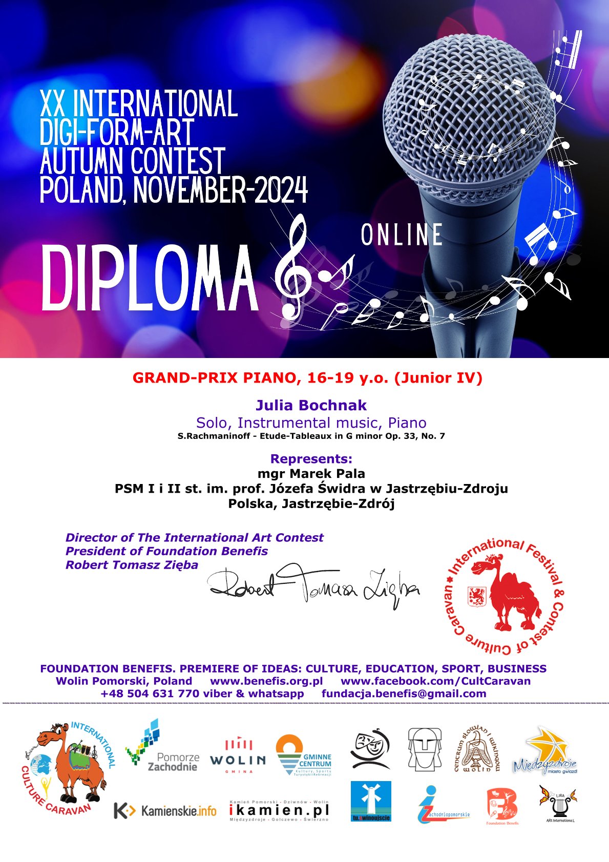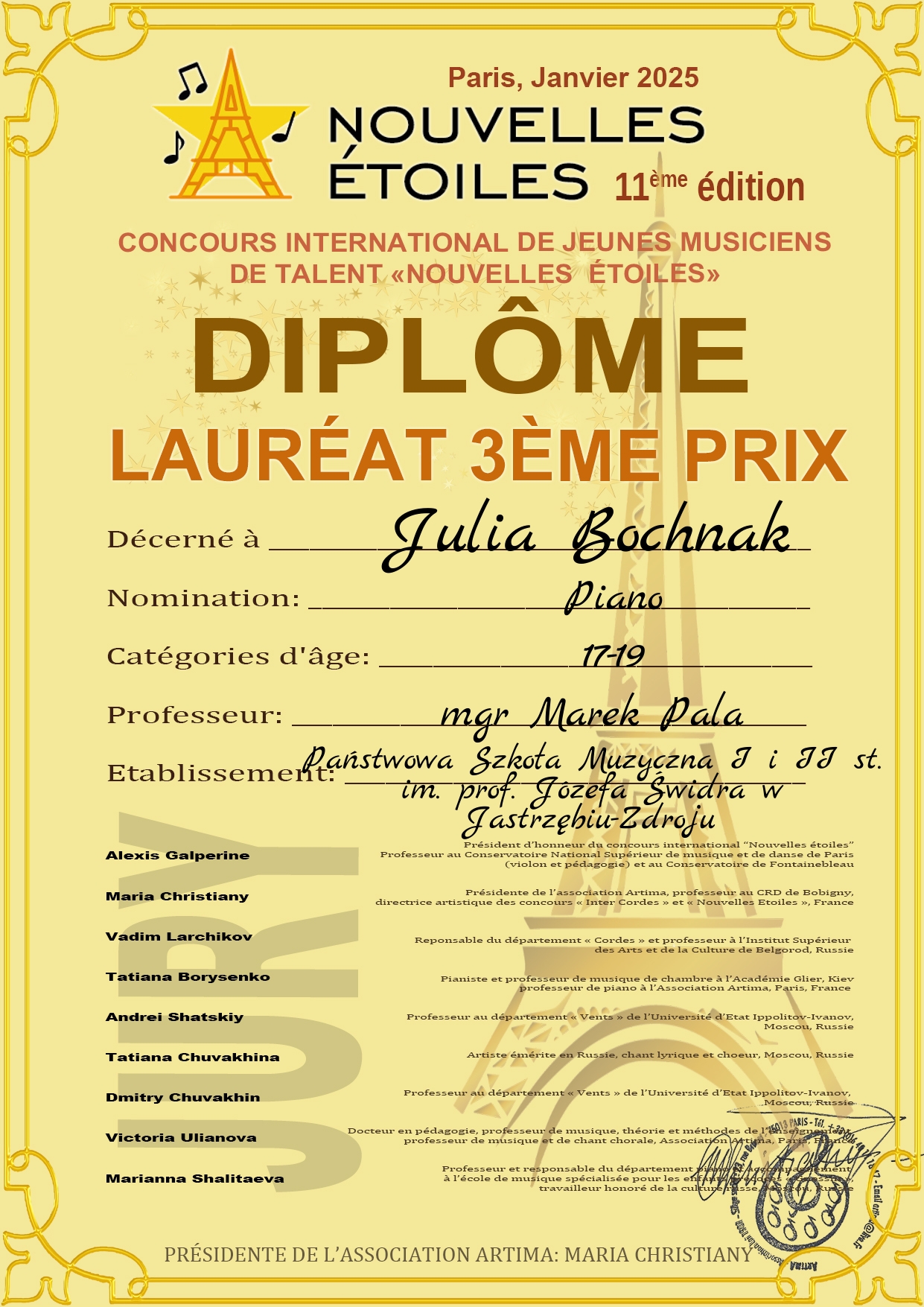 - BRĄZOWY MEDAL – JULIA BOCHNAK z klasy fortepianu mgra Marka Pali