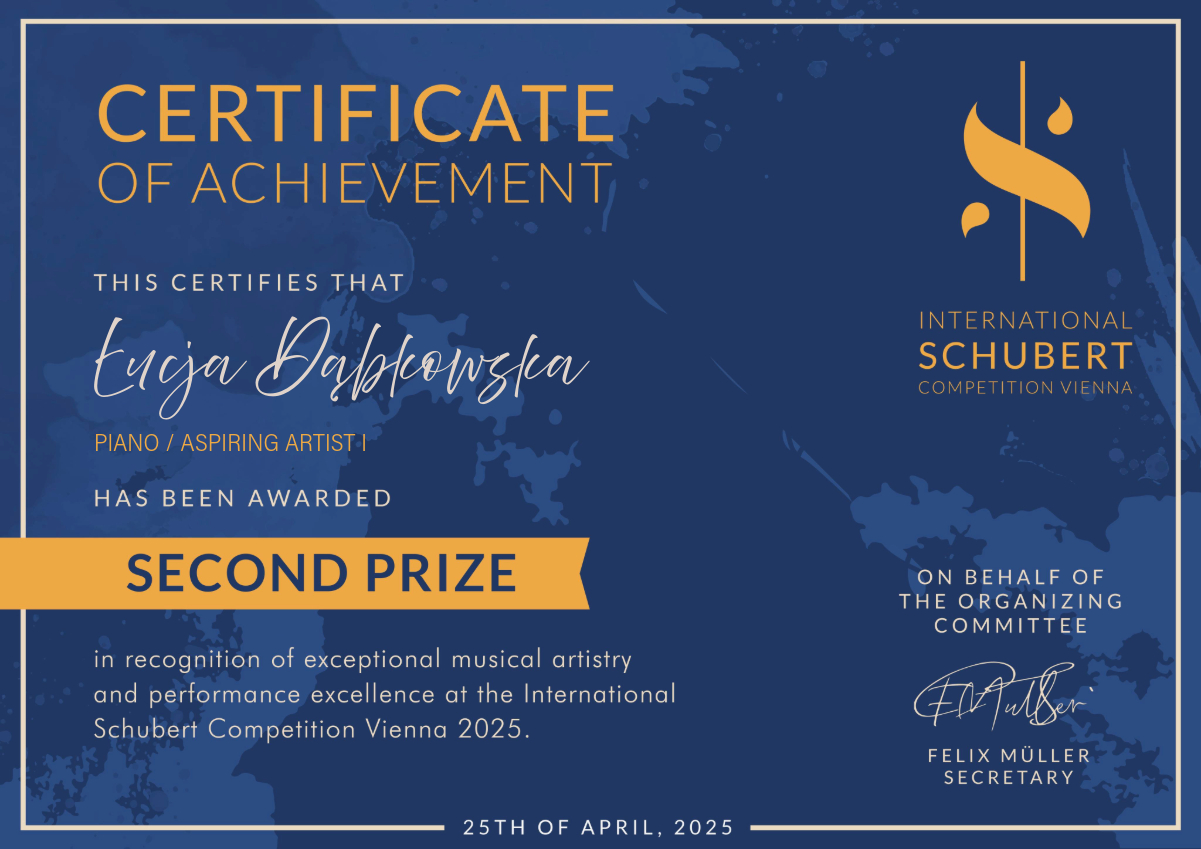 - Międzynarodowy Konkurs Schubert Vienna 2025, Austria, 25.04.2025 r. – edycja online