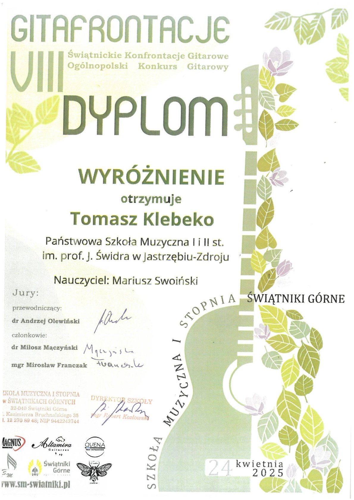 - VIII Ogólnopolski Konkurs Gitarowy w ramach Świątnickich Konfrontacji Gitarowych „Gitafrontacje”, Świątniki Górne, 24.04.2025 r.