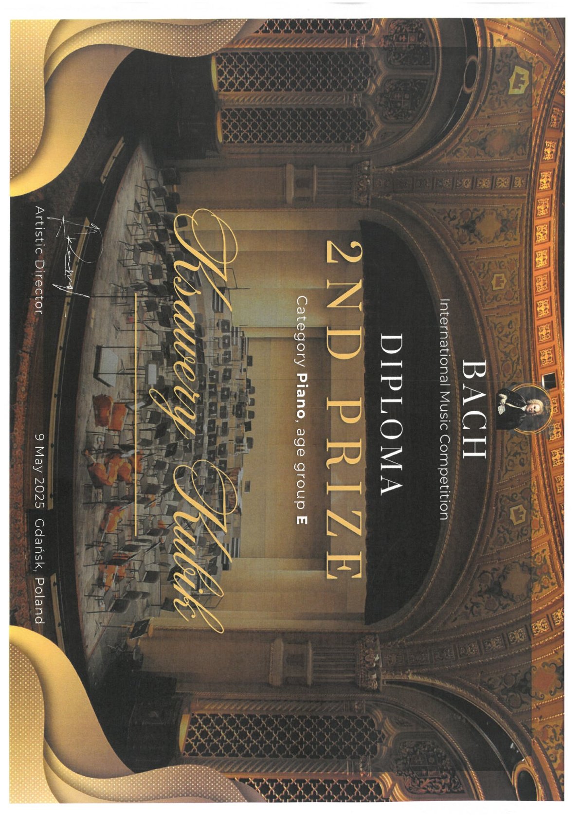 - Międzynarodowy Konkurs Muzyczny „BACH”, Gdańsk, 9.05.2025 r. – edycja online