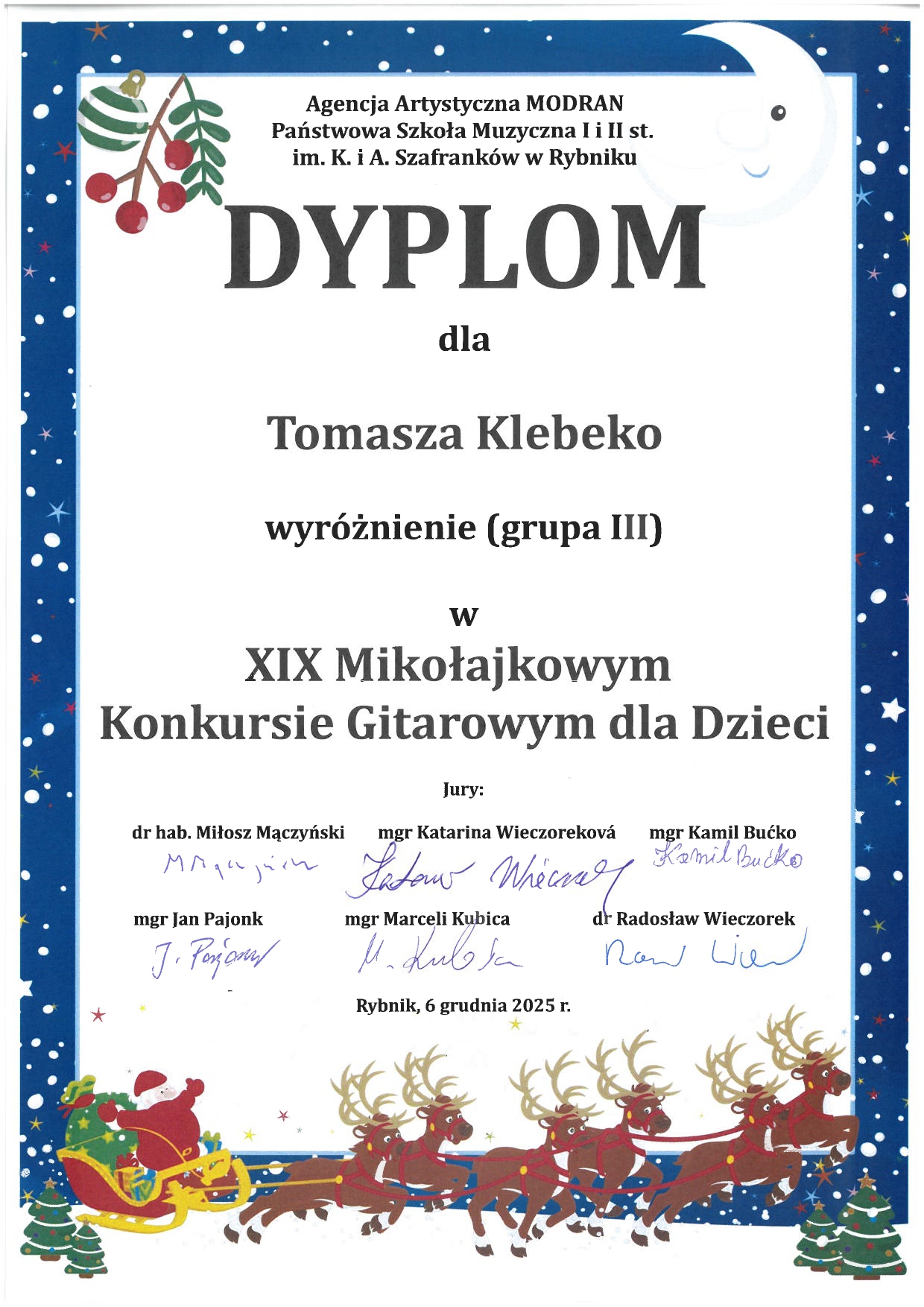 - XIX Mikołajkowy Konkurs Gitarowy dla Dzieci, Rybnik, 6.12.2025 r.