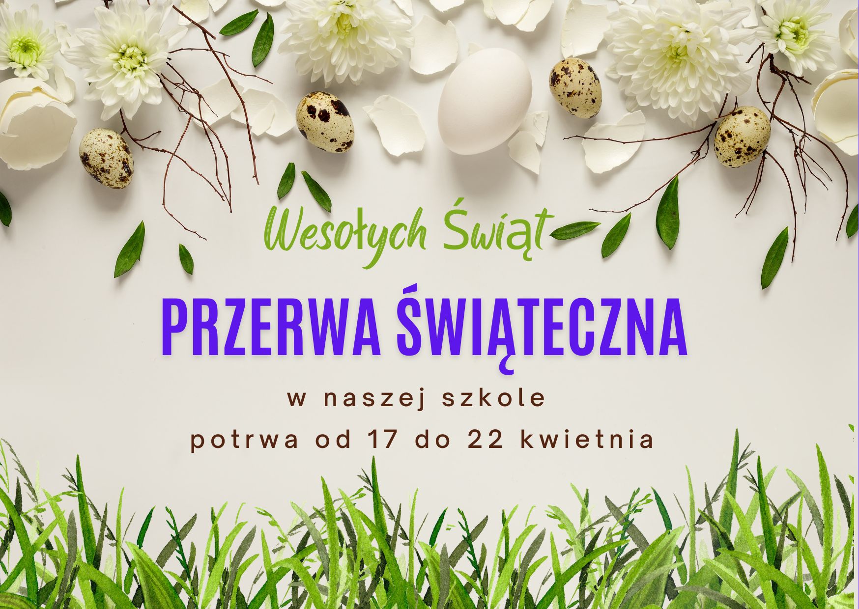 Wielkanocna przerwa Świąteczna potrwa w naszej szkole od dnia 17 do 22 kwietnia 2025 r.