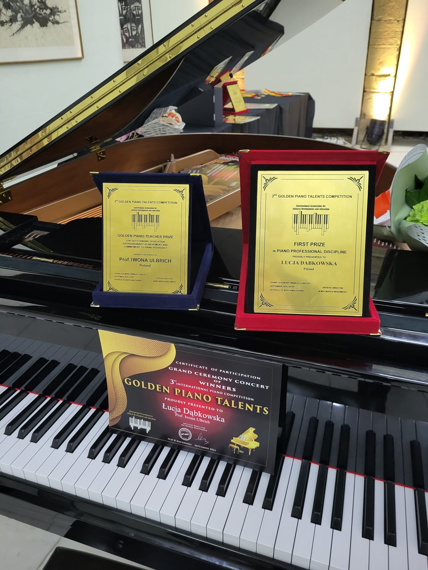 Łucja zdobyła 1 miejsce!!! w Międzynarodowym Konkursie Pianistycznym "Golden Piano Talents" i została zaproszona na koncert laureatów, który odbył się w połowie września 2024 r. w Stip w Macedonii.