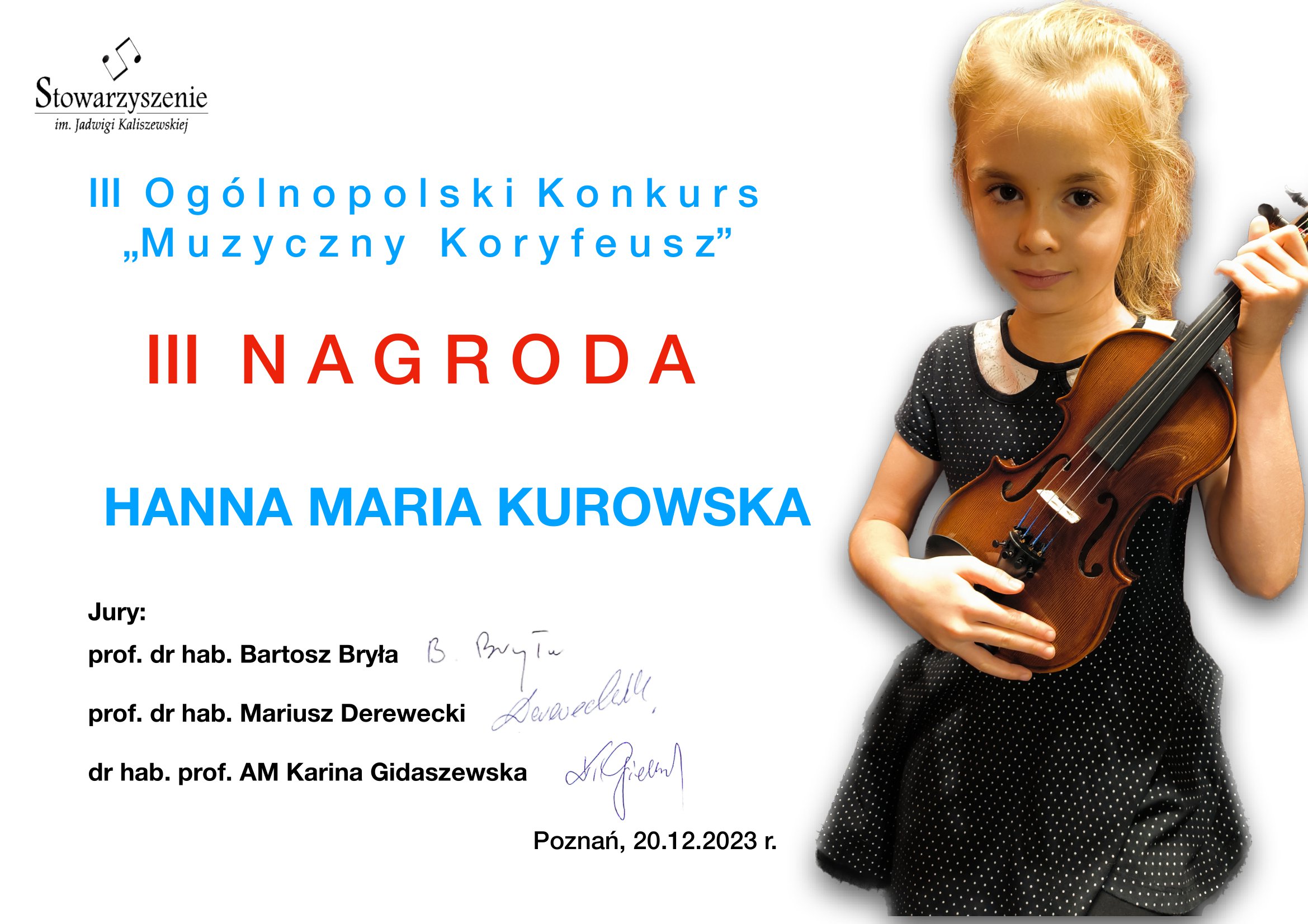 Sukces młodej skrzypaczki Hanny Marii Kurowskiej w konkursie ogólnopolskim!