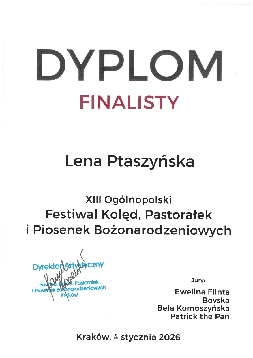 Z ogromną przyjemnością przedstawiamy sukcesy wokalne naszej uczennicy Leny Ptaszyńskiej!