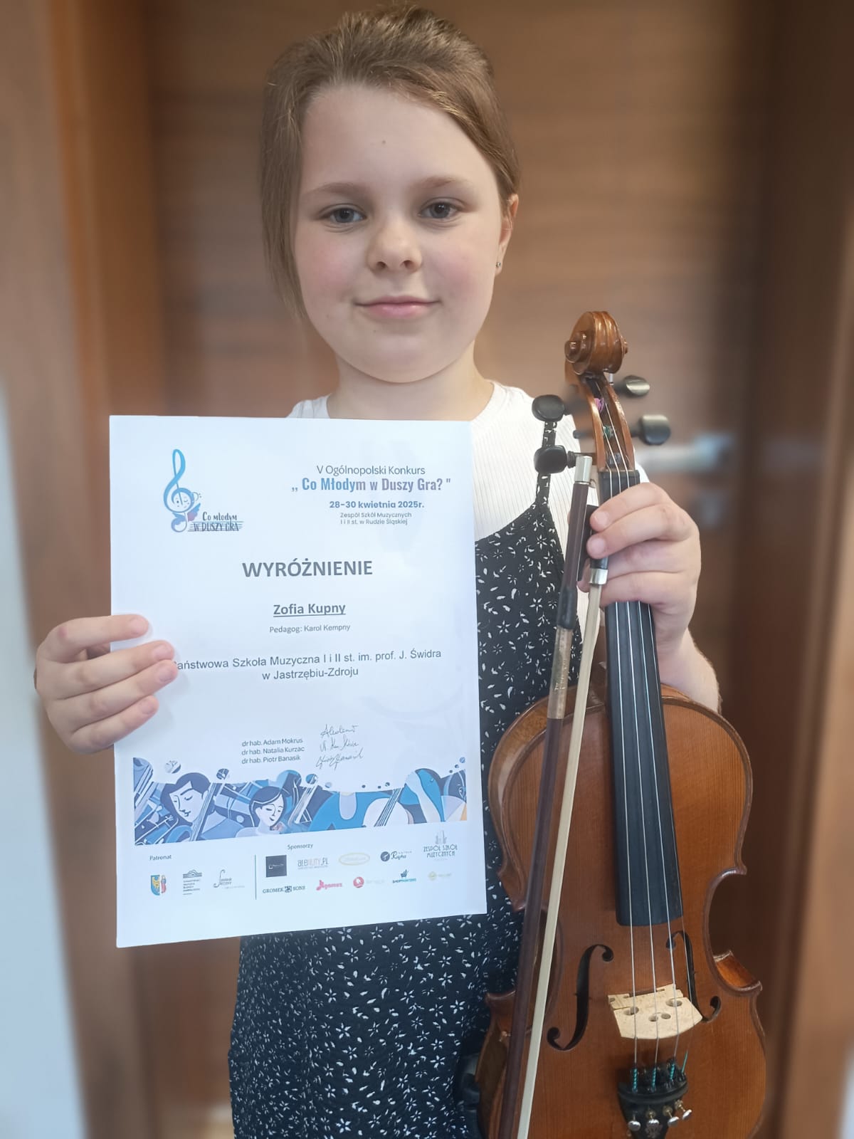 Zosia jest uczennicą klasy skrzypiec Pana Karola Kempnego.