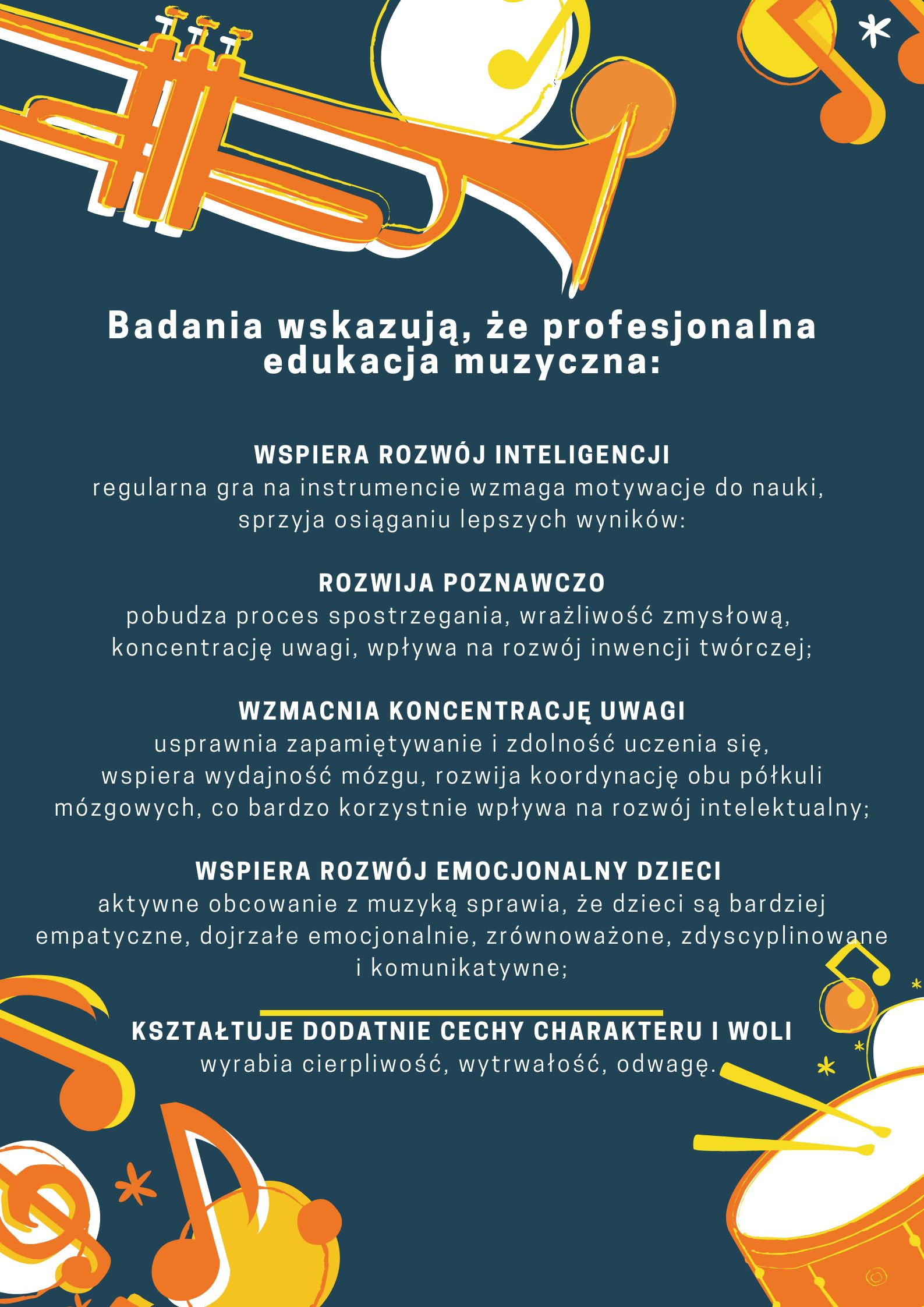 Powstanie klasy muzycznej jest uzaleznione od liczby dzieci przyjętych. W przypadku braku wymaganej liczby uczniów dzieci zostaną rozdzielone pomiędzy klasami.
