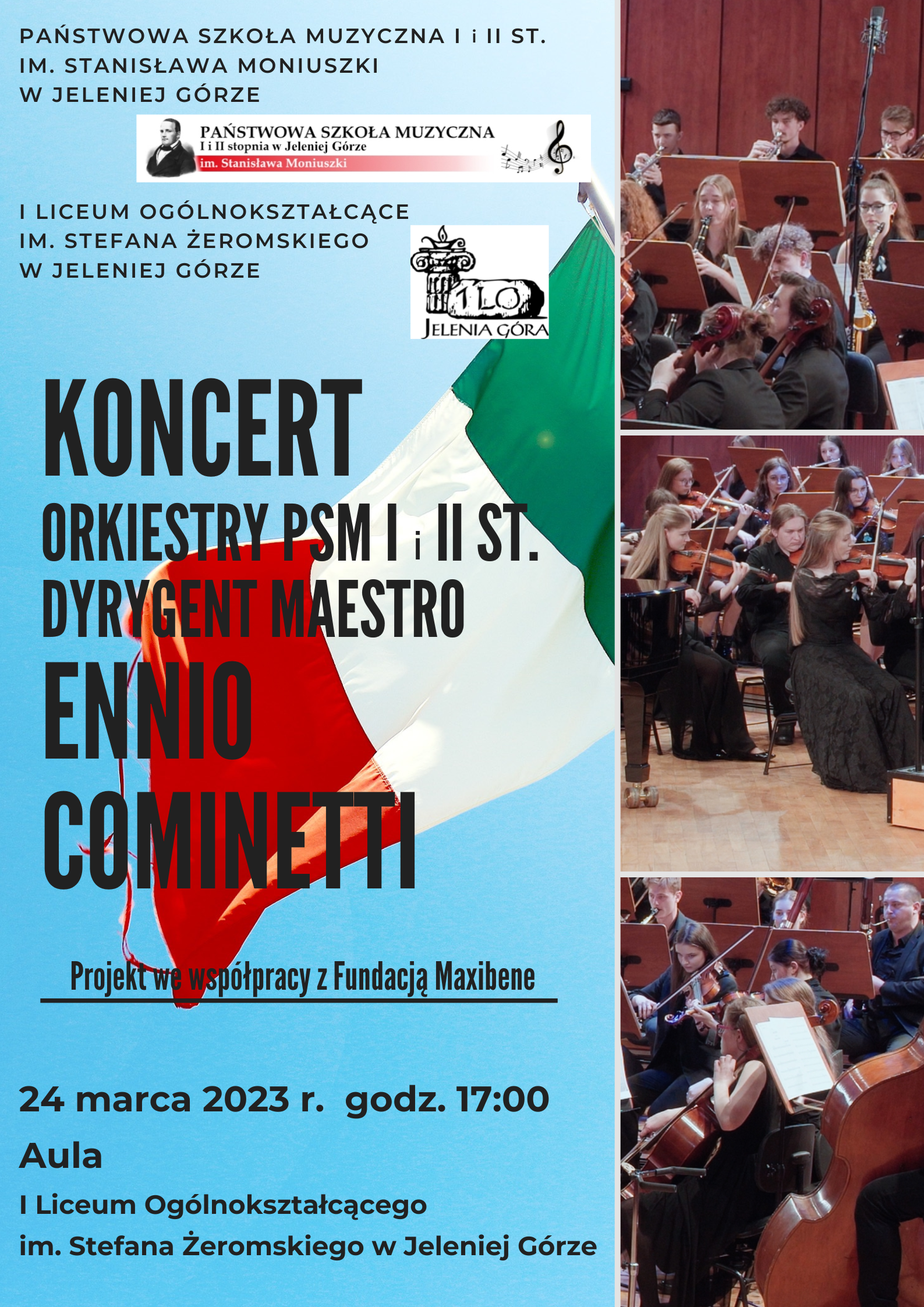 W dniach 22 - 23 marca 2023 r. w auli im. Stefana Strahla PSM I i II stopnia odbywają się zajęcia prowadzone przez maestro Ennio Cominettiego. Zwieńczeniem, podsumowaniem prowadzonych warsztatów jest koncert na który serdecznie Państwa zapraszamy.