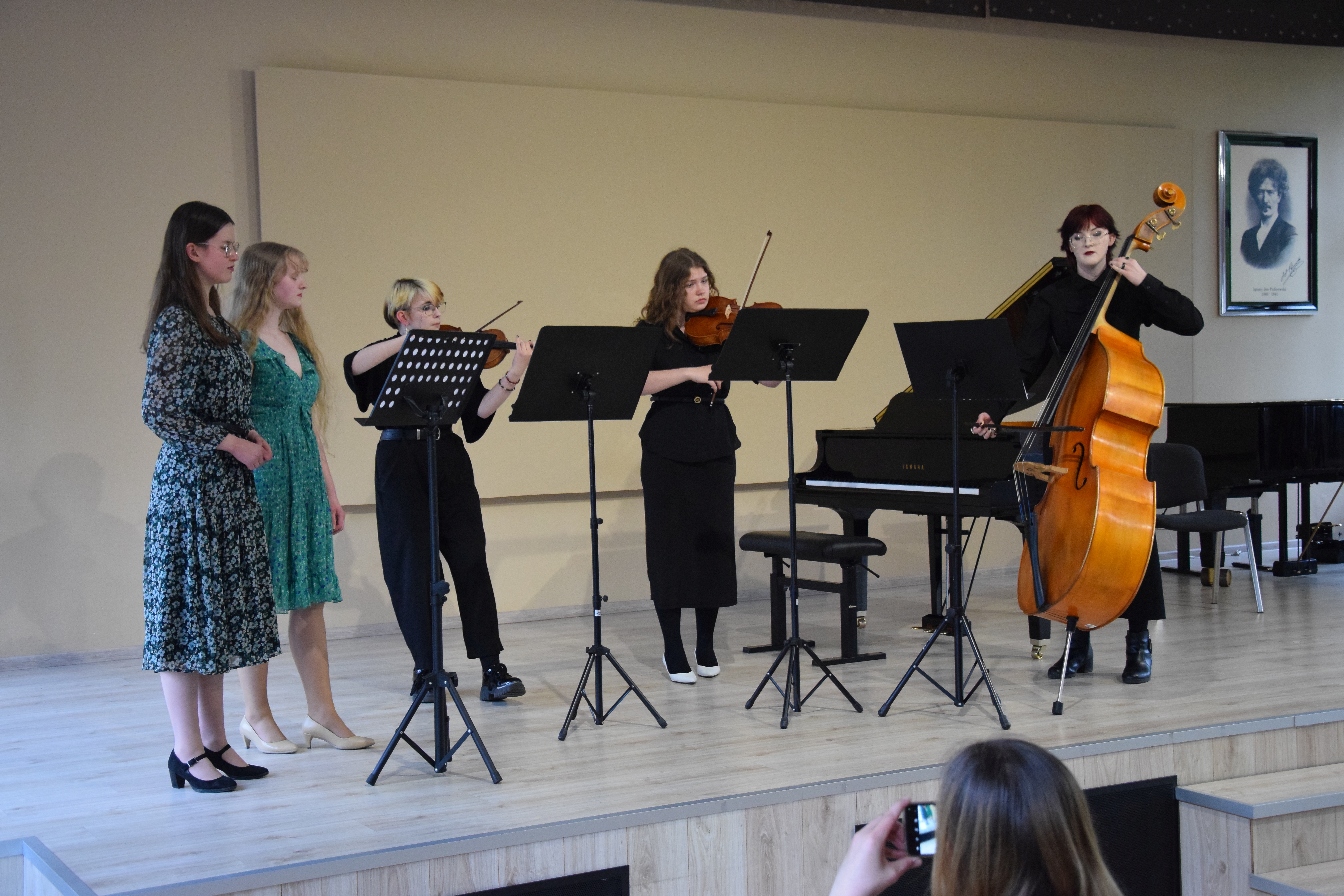 13 maja 2025 r. odbył się koncert w wykonaniu uczniów Szkoły Muzycznej II stopnia w Gdańsku-Wrzeszczu, wśród których znalazła się nasza absolwentka - Zofia Szuman. Dowiedzieliśmy się o zasadach rekrutacji, specjalnościach i funkcjonowaniu szkoły. Bardzo ciekawy i zróżnicowany program koncertu spotkał się z entuzjastycznym przyjęciem. Usłyszeliśmy kompozycje na tubę, fortepian, klarnet, zespół fagotów, gitarę, skrzypce, kontrabas i wokal.