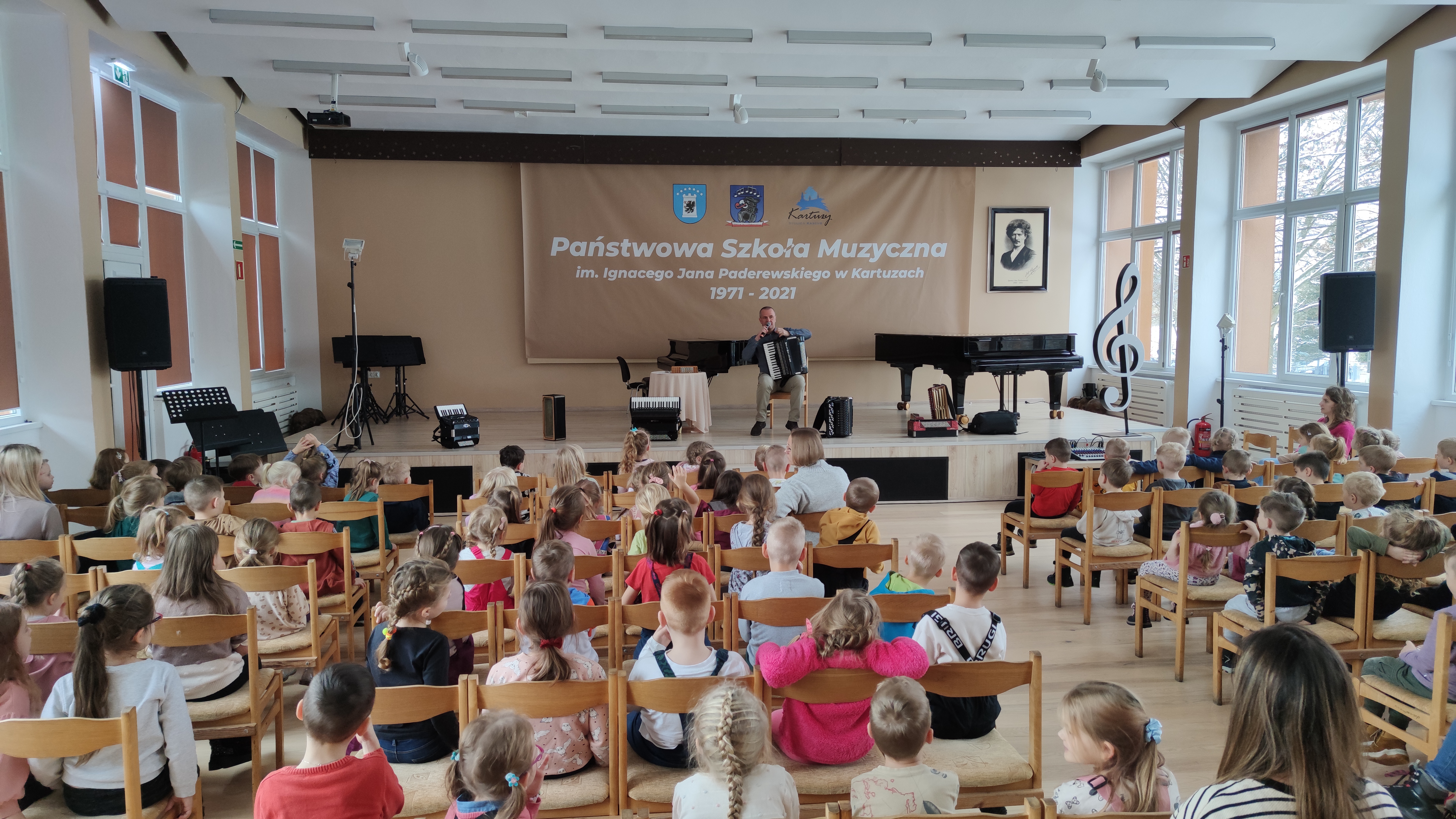 Po pandemicznej przerwie wznowiliśmy organizację cyklu spotkań pt. "Poznajemy instrumenty" przeznaczonych dla przedszkoli i zerówek szkolnych. Do tej pory dzieci poznały: akordeon (21 listopada) oraz gitarę klasyczną i elektryczną (5 grudnia). Zajęcia prowadzili Marek Rogowski i Marcin Wądołowski.