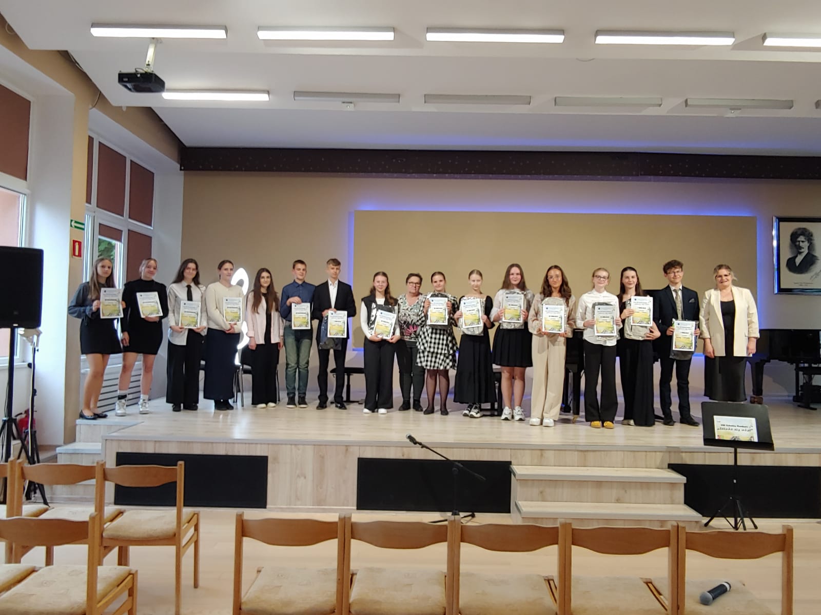 - Wyróżnienie - Magdalena Hewelt z klasy fletu p. Anny Baranowskiej-Bober; Maksymilian Zieliński z klasy skrzypiec p. Danuty Kowalczuk; Zofia Bladowska z klasy skrzypiec p. Danuty Kowalczuk; Zuzanna Karczewska z klasy gitary p. Marcina Wądołowskiego; Antonina Treder z klasy klarnetu p. Karoliny Wiak-Rembowskiej