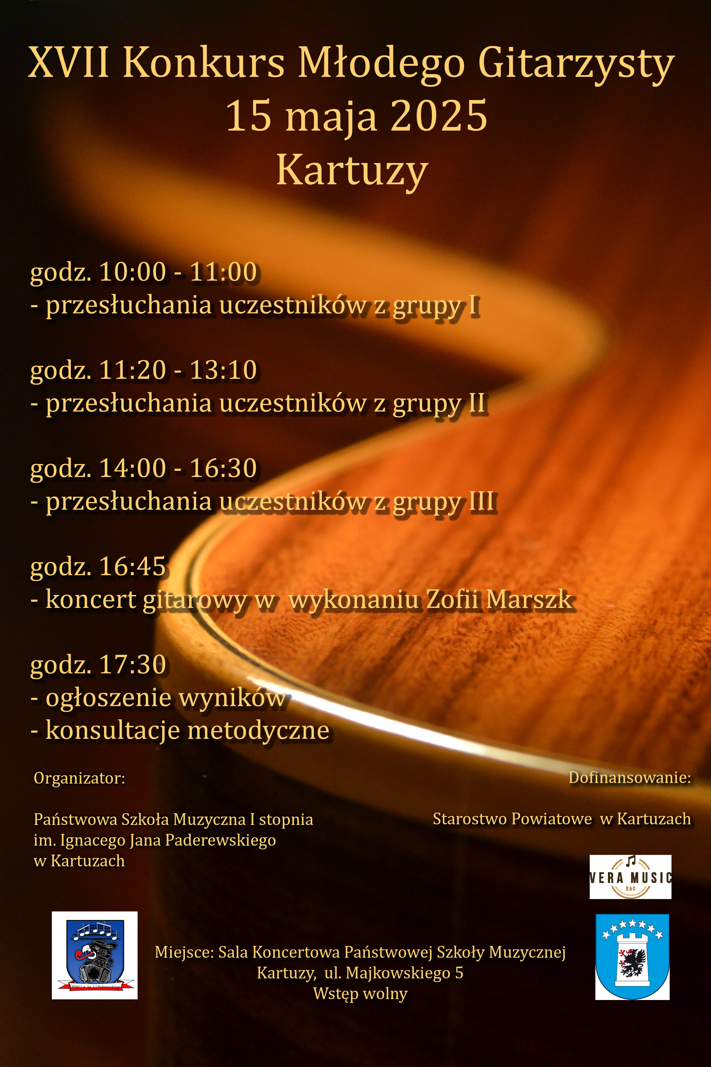 XVII Konkurs Młodego Gitarzysty odbył się w dniu 15 maja 2025 r. w Państwowej Szkole Muzycznej I stopnia im. Ignacego Jana Paderewskiego w Kartuzach.