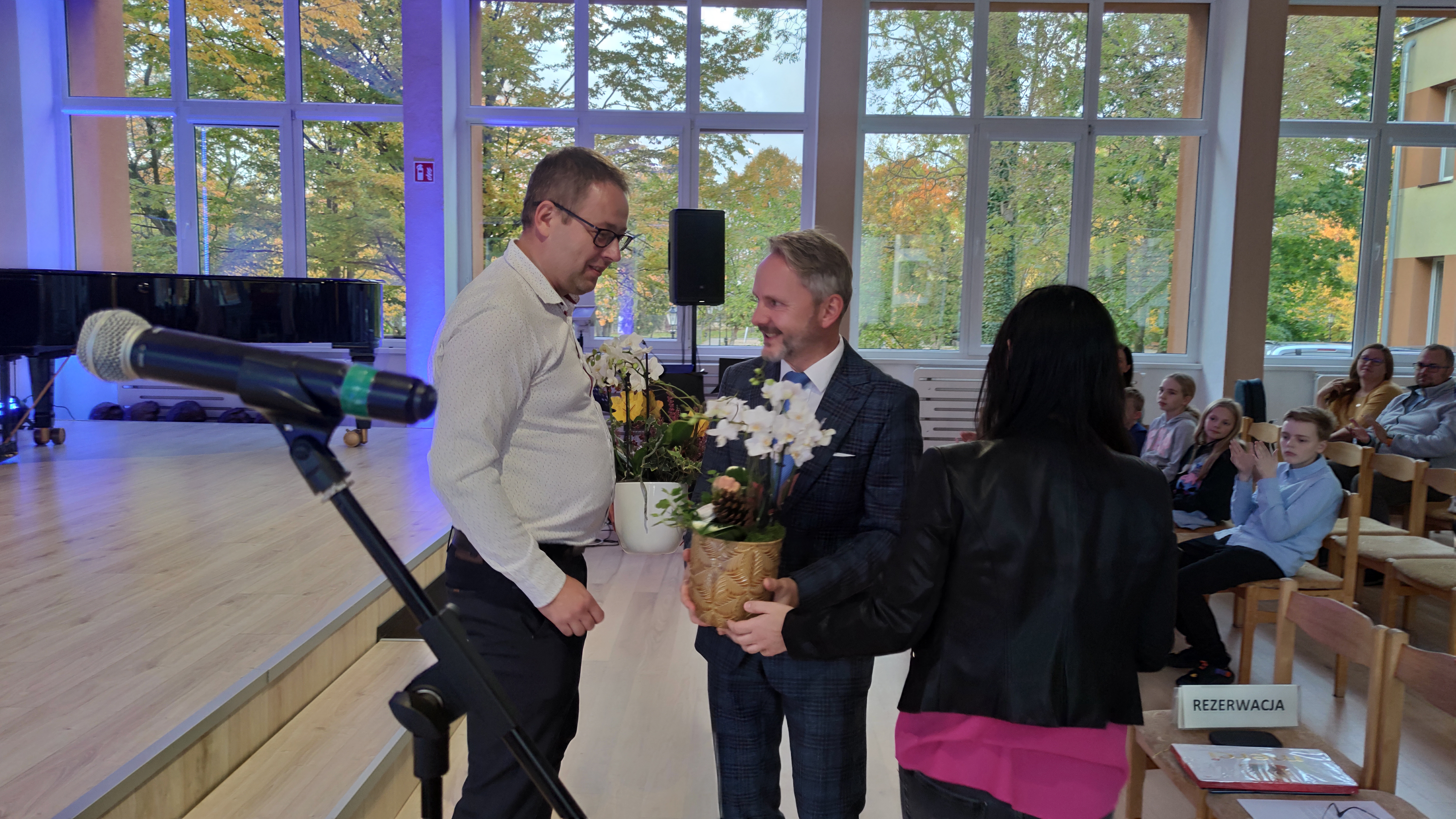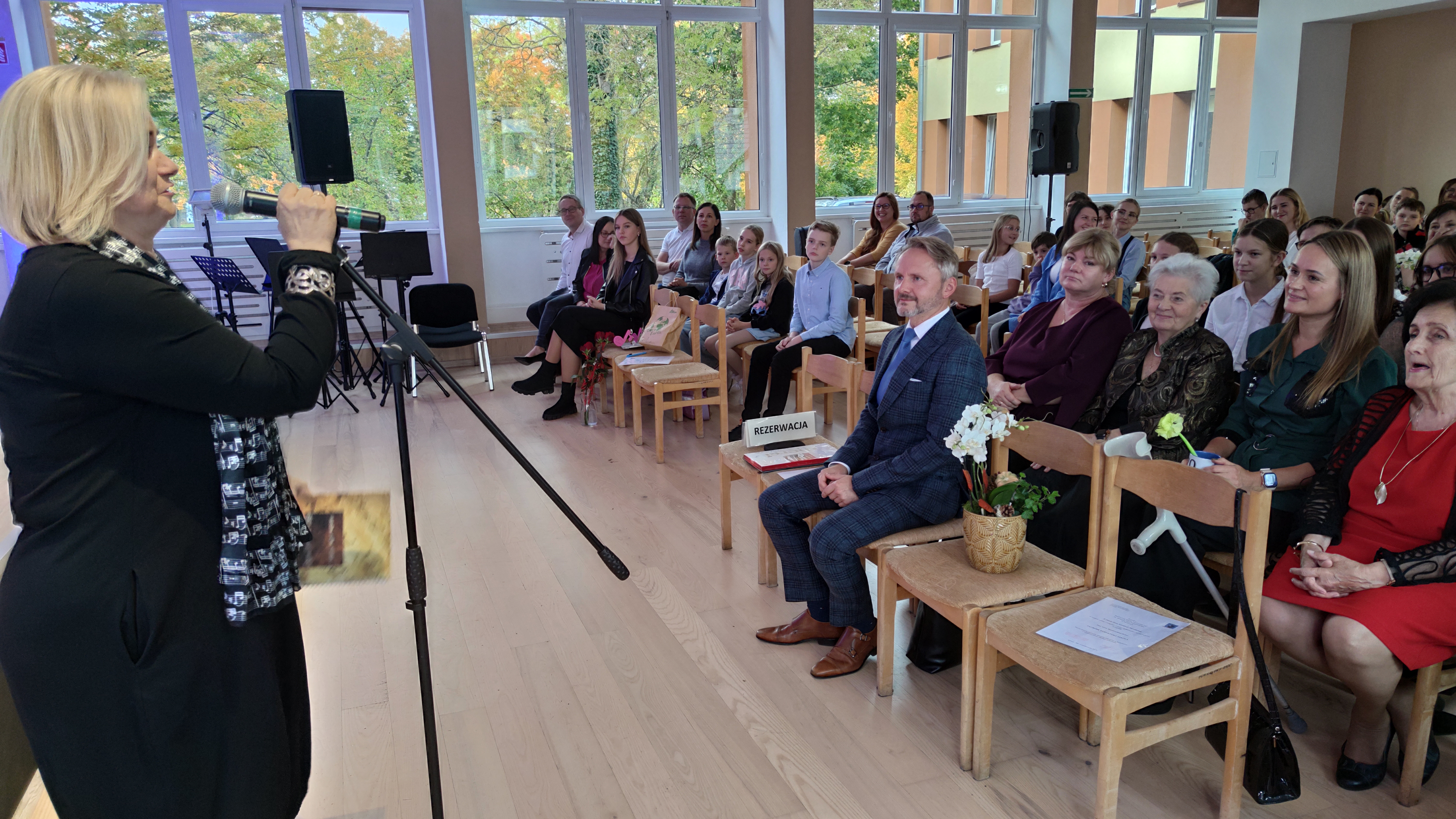 13 października 2025 r. świętowaliśmy Dzień Edukacji Narodowej. Dyrektor szkoły Sebastian Szuman wręczył nauczycielom oraz pracownikom administracji i obsługi nagrody za wyróżniającą pracę. Samorząd Uczniowski i Rada Rodziców przekazali życzenia. Miłym akcentem był występ absolwentek Anny Skorowskiej i Oliwii Węsierskiej dla "swojej dawnej" pani Wandy Walenczak, która obchodziła jubileusz 40 lat pracy. Dziewczyny obecnie uczą się w Ogólnokształcącej Szkole Muzycznej w Gdańsku. Chór szkolny pod kierunkiem pani Anny Baranowskiej-Bober przygotował utwór niespodziankę, a absolwent klasy fortepianu pana Marcina Mrozek Gliszczyńskiego Miron Łajming wystąpił z mini recitalem wykonując utwory Liszta i Ravela. Miron jest studentem klasy fortepianu Akademii Muzycznej w Gdańku.