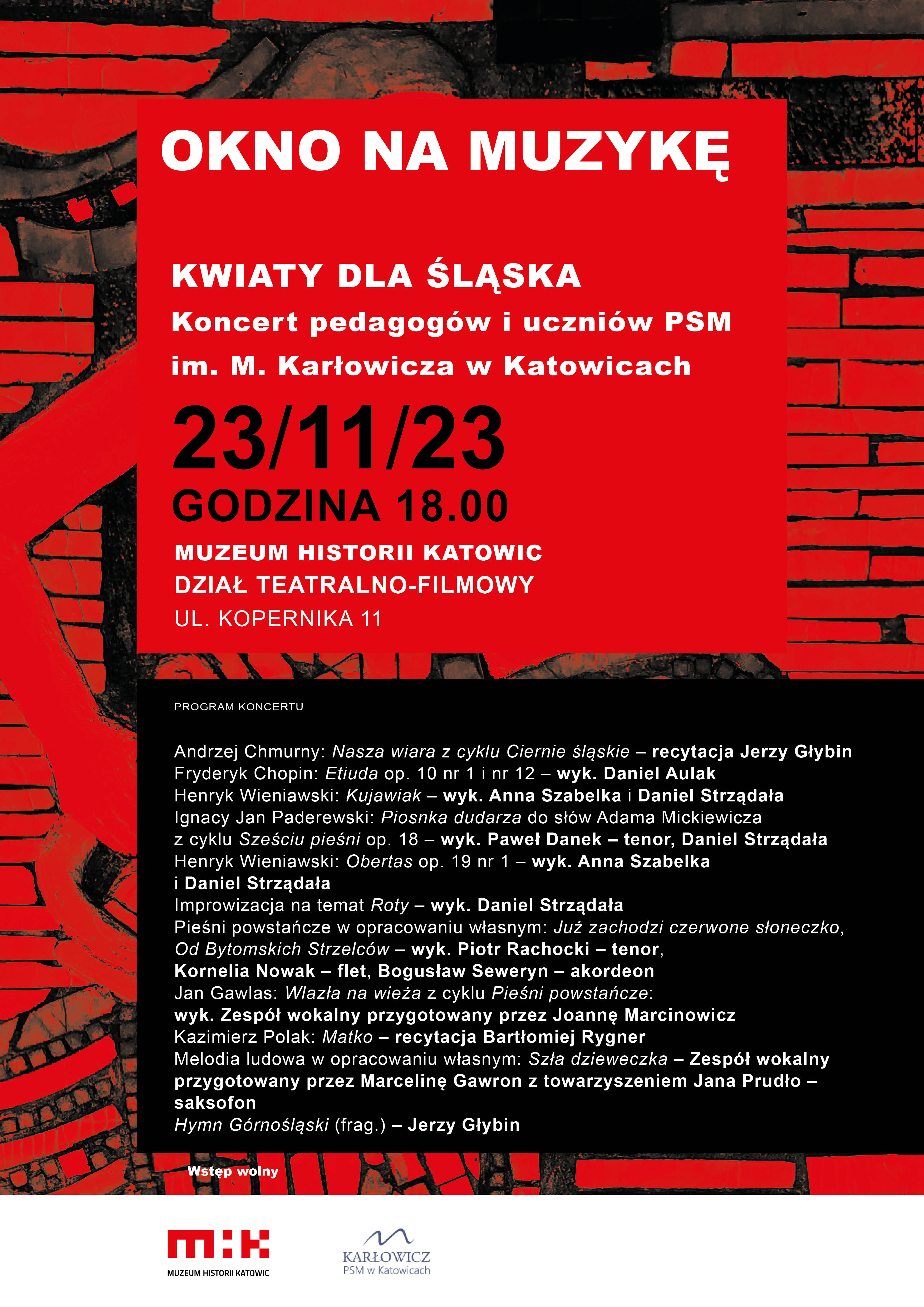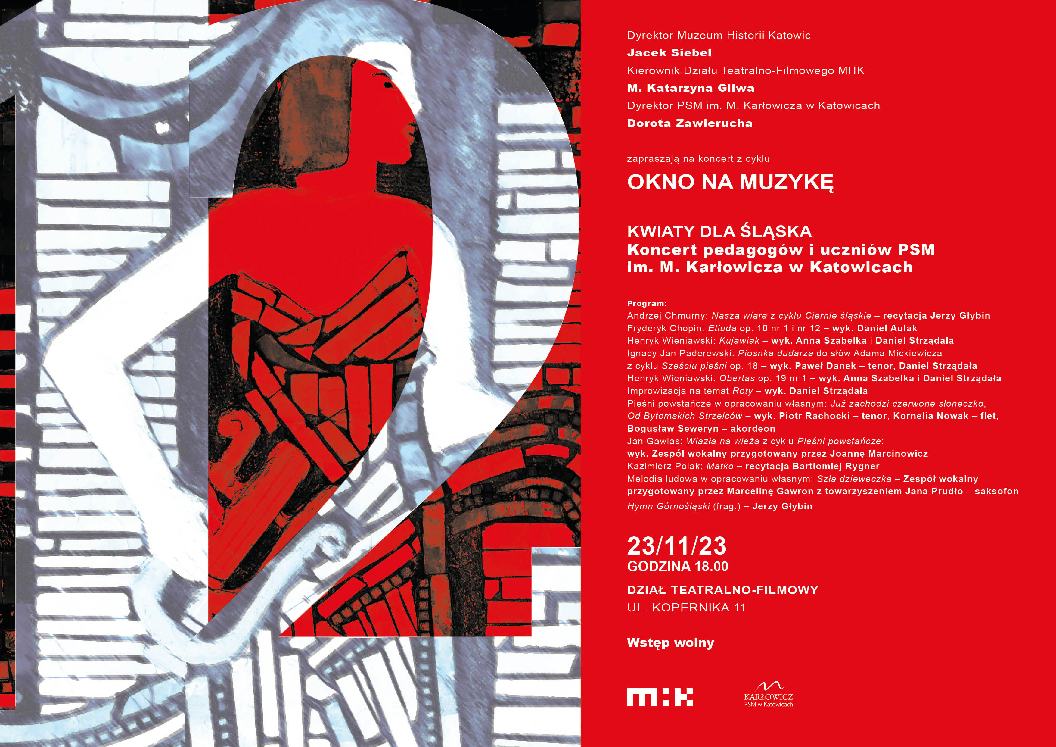23.11.2023 - OKNO NA MUZYKĘ KWIATY DLA ŚLĄSKA Koncert pedagogów i uczniów PSM im. M. Karłowicza w Katowicach